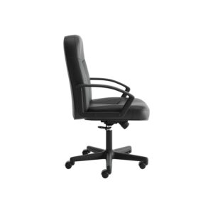 – Smooth, pliable SofThread leather seating surfaces with tailored stitching detail; color is Black. Fixed arms provide added comfort. Pneumatic seat height adjustment moves the seat up and down to adapt to various body heights. Excellent for any organization seeking high performance on a limited budget.