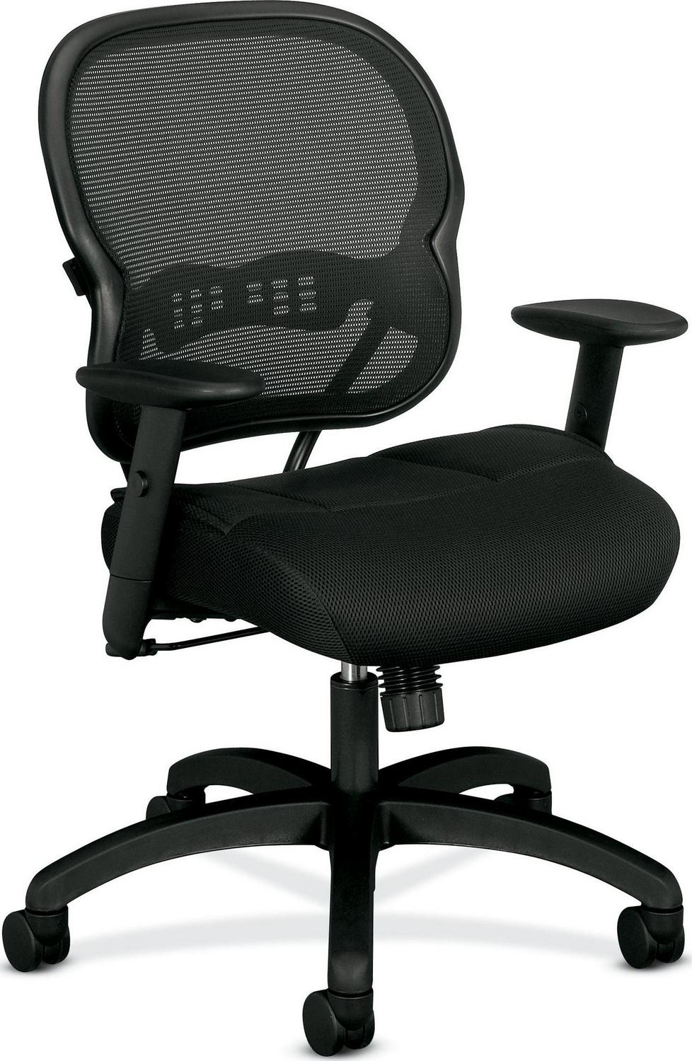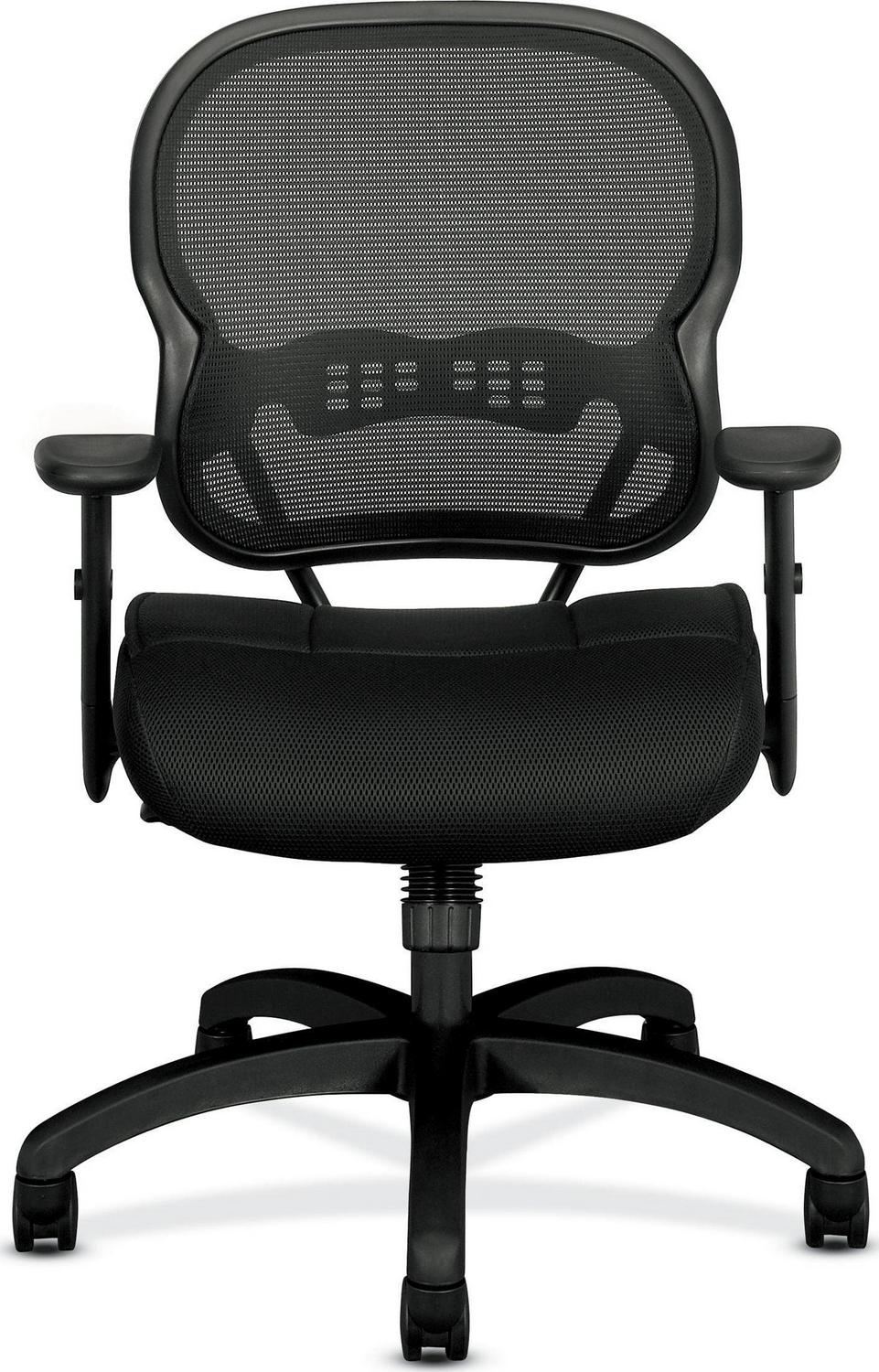 BREATHABLE MESH COMPUTER CHAIR: This work chair’s mesh seat back and sandwich mesh cushion with two layers of padding keep your body happy and cool so you can concentrate on work ERGONOMIC ADJUSTMENTS: Let this comfortable task chair take care of your body while you work with a deep, comfy recline, adjustable arms and pneumatic height adjustment BUDGET FRIENDLY: These office chairs offer excellence without expense so you can stretch your furniture dollar while working in comfort ON THE MOVE: Pull up to your computer desk, swivel around to collaborate with your teammate, or wheel over to the snack area for a quick break with this five-star resin base and durable wheels DURABLE MID BACK CHAIR: We use only high-quality materials to keep your chair rolling for years but keep you covered with the HON 5-year Limited Warranty just in case something goes wrong