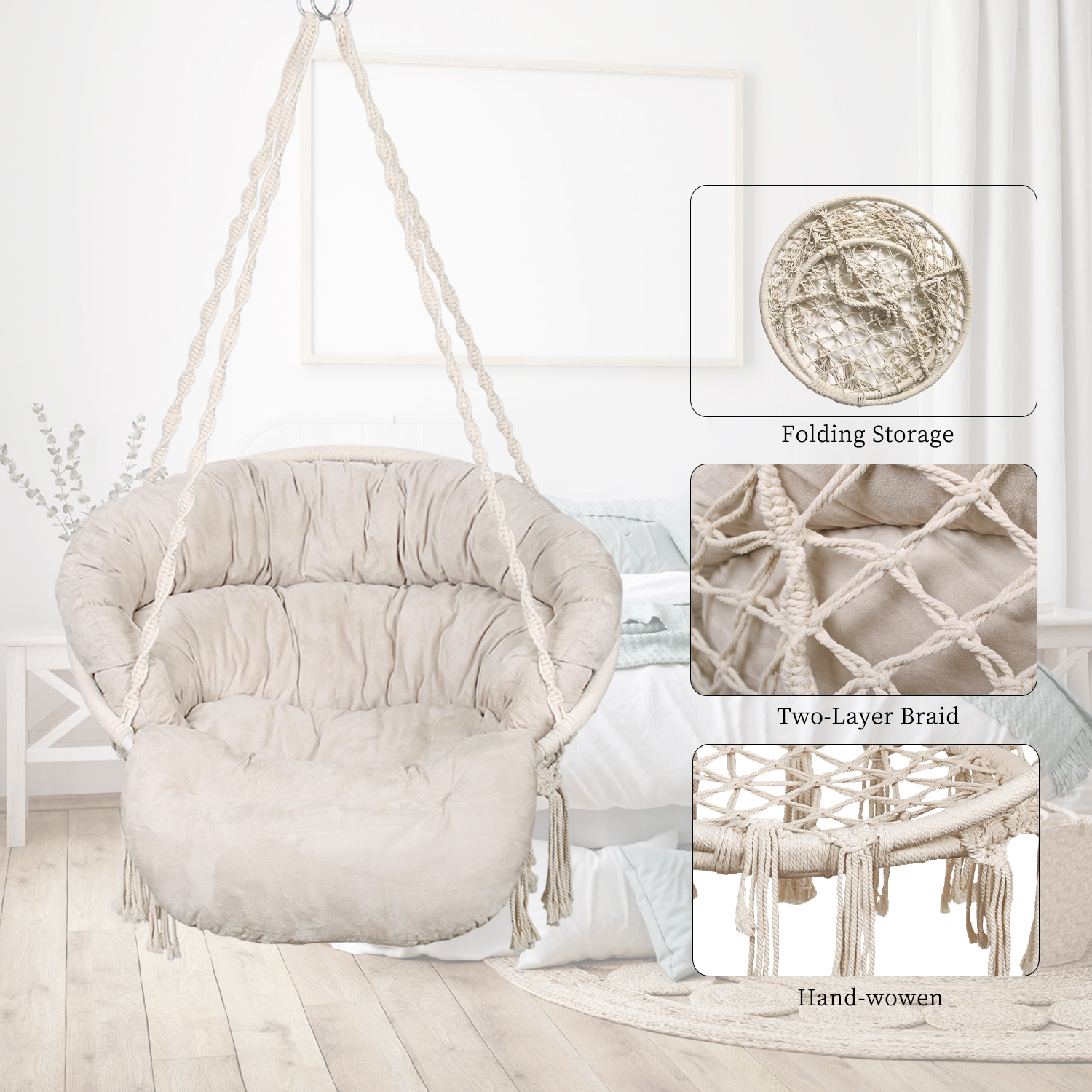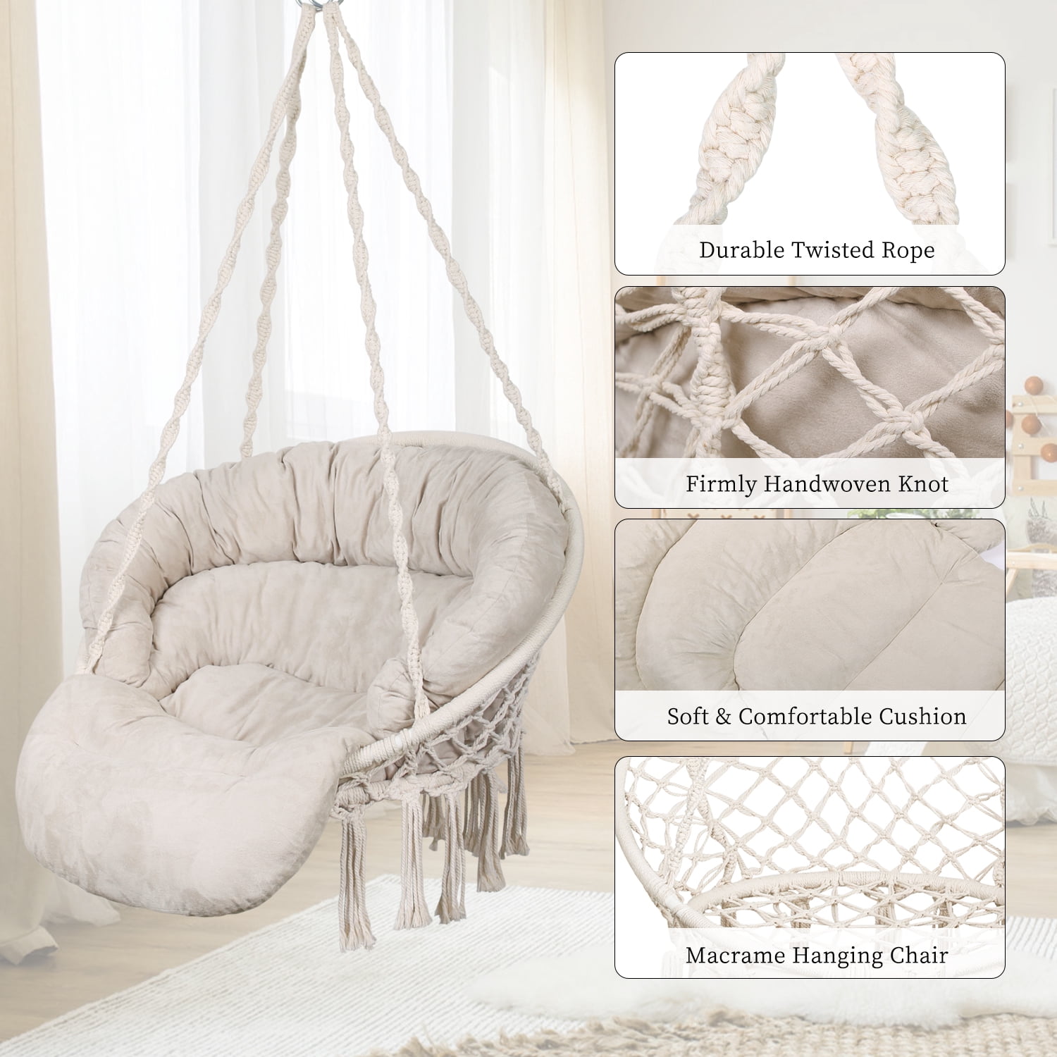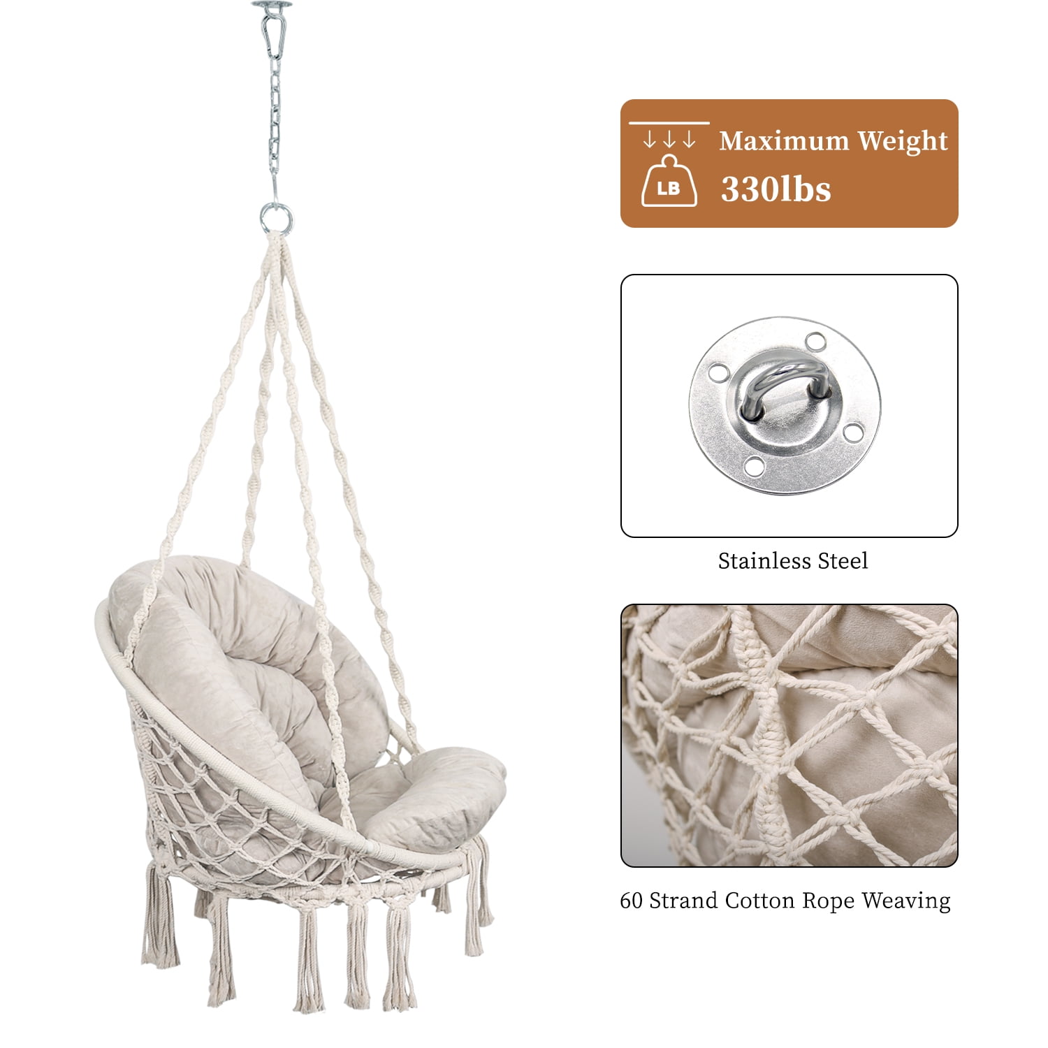 Bathonly Hammock Chairs, Bohemian Cotton Hanging Rope Swing for Indoor Outdoor, Beige, Max 330 lbs