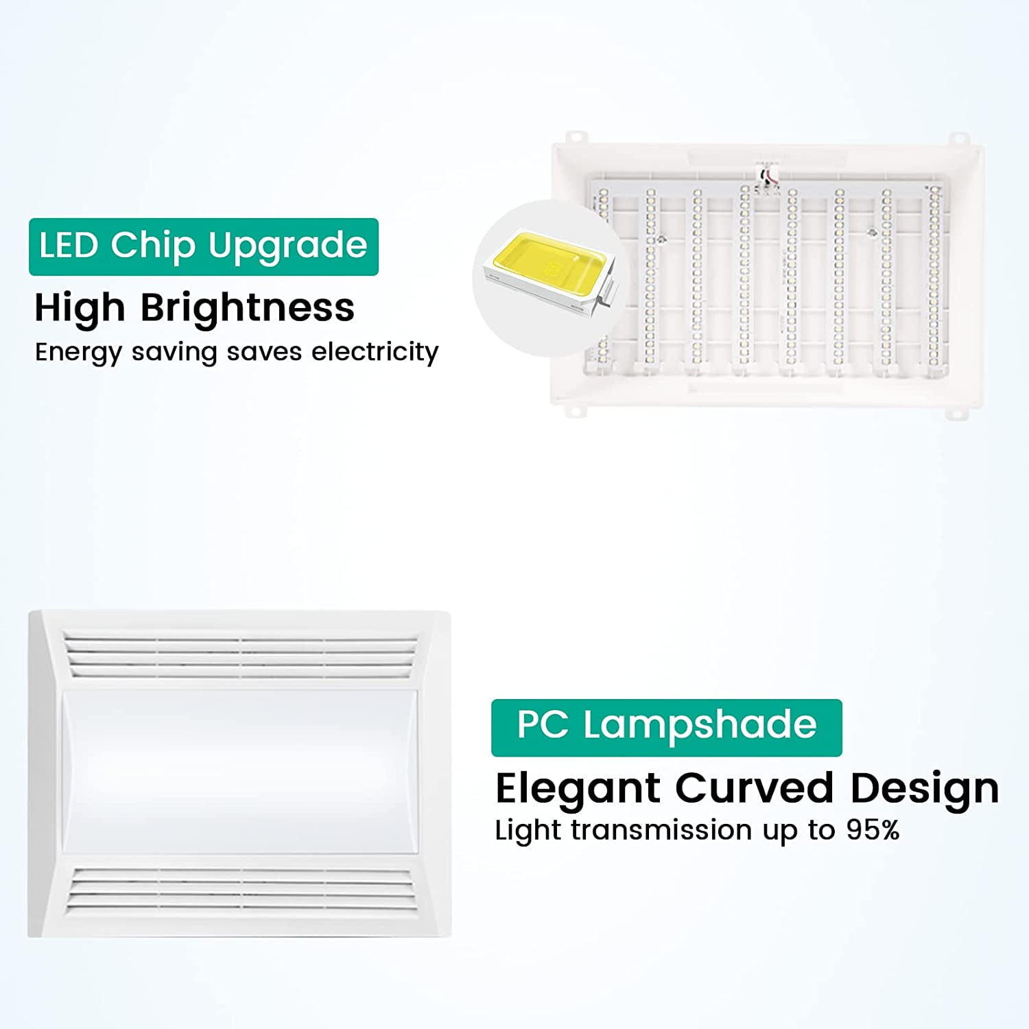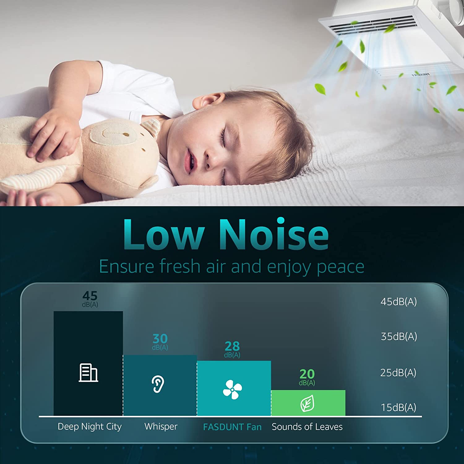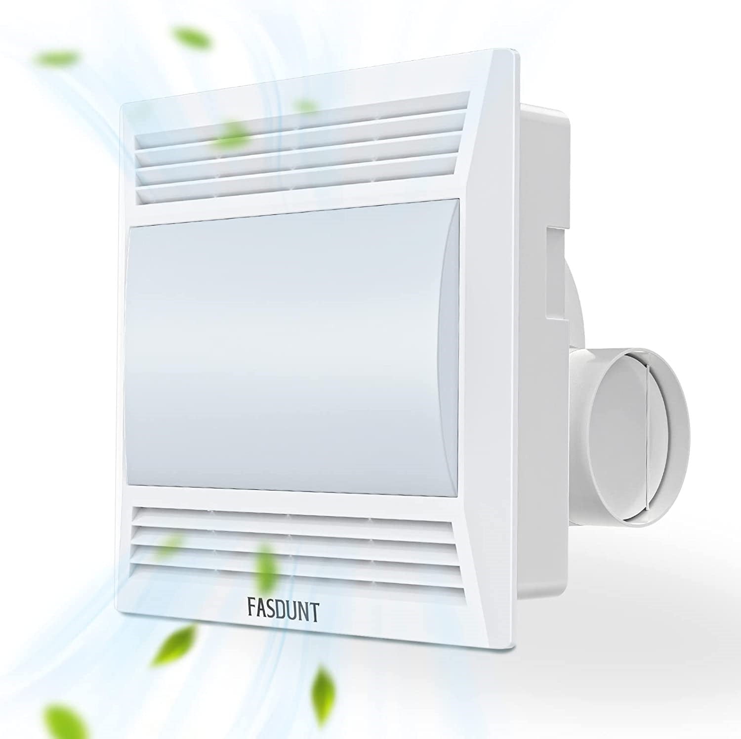 TRANSFORM YOUR BATHROOM Upgrade your bathroom with FASDUNT’s ultra-quiet ventilation fan and light combo. Say goodbye to fog and odor and hello to a fresh, clean space. &; EASY INSTALLATION Our ABS material design makes it lighter and more durable, with fewer installation steps. Detailed instructions and videos help you complete the installation quickly. Fits ceiling openings of 10.43 x 10.43 inches / 26.5 x 26.5 cm (L x W) &; EFFECTIVE VENTILATION With a powerful air volume of 110 CFM, our high-quality bearing motor is characterized by low power consumption, low-temperature rise, long life, high efficiency, and energy-saving. Perfect for rooms up to 105 sq. ft. &; 3 COLORS ADJUSTABLE Choose your favorite light color (Warm White/Daylight/Cool White) anytime with our 3 colors of LED light (3000K/4000K/6000K). Control the fans and lights through two wiring methods, independent control & unified control. Comes with beautiful and thicker packaging for better protection. &; ULTRA-QUIET Our 1.0 Sones sound rating for the bathroom ventilation fan is ultra-quiet when working. Made with advanced technology and a high-performance spiral centrifugal impeller, our fan easily removes odor and humidity with its powerful ventilation capacity &;