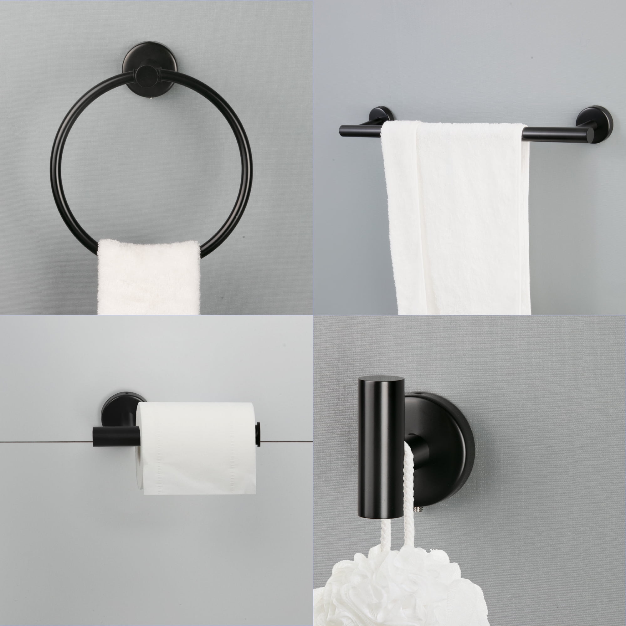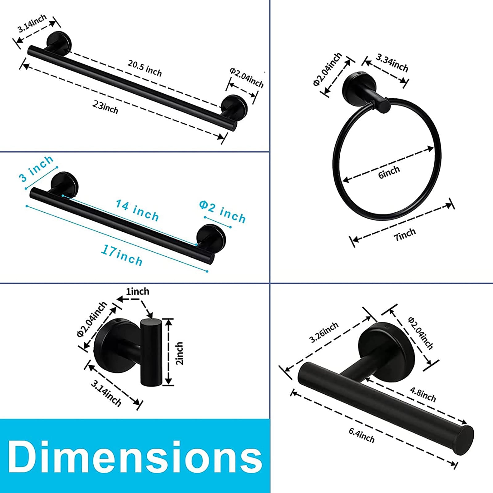 Bathroom Hardware Set, 6-Piece Matte Black Bath Accessories Set Wall Mount Includes 17/23″ Towel Bar,Toilet Paper Holder,Towel Ring, 2 Hooks SUS304 Stainless Steel,Heavy Duty