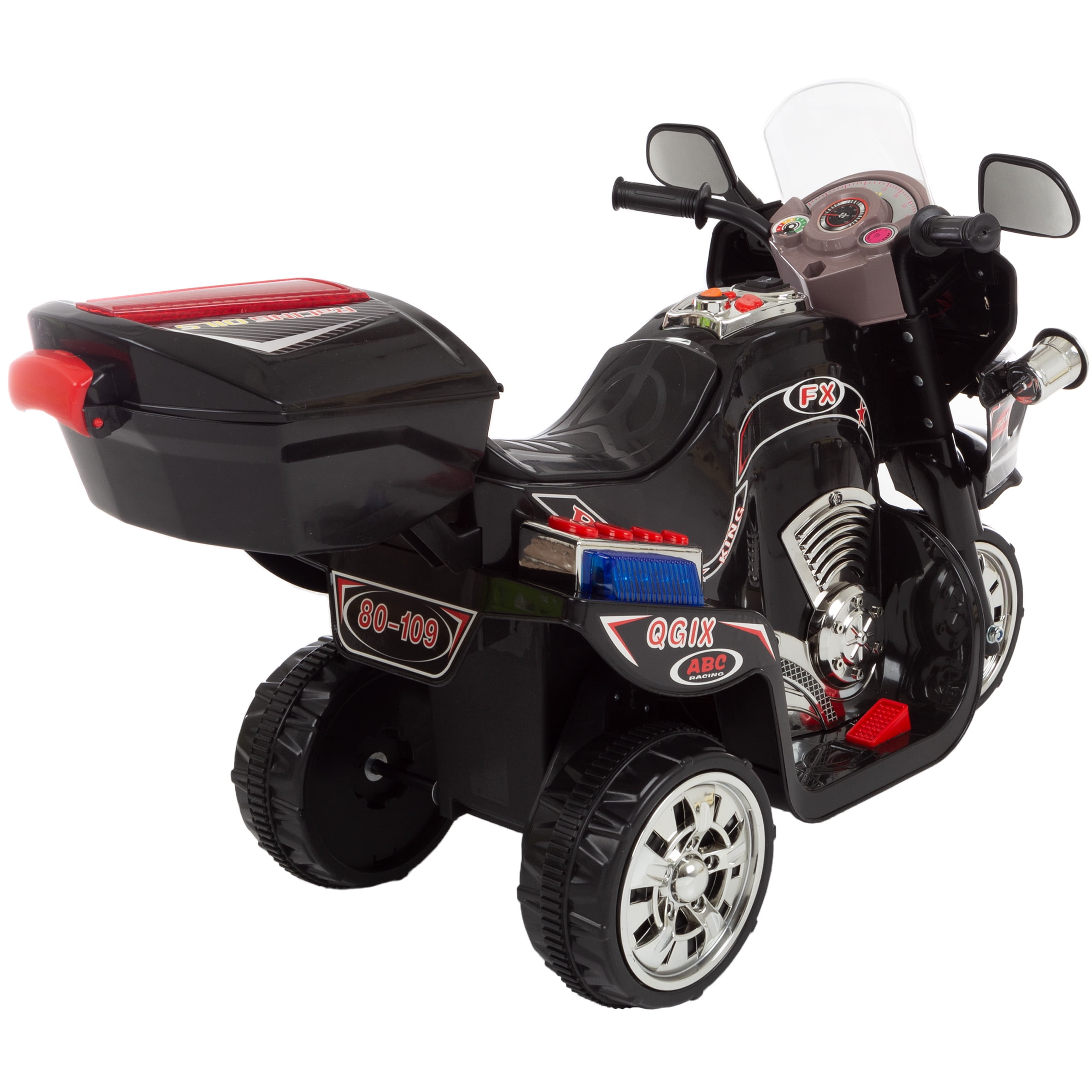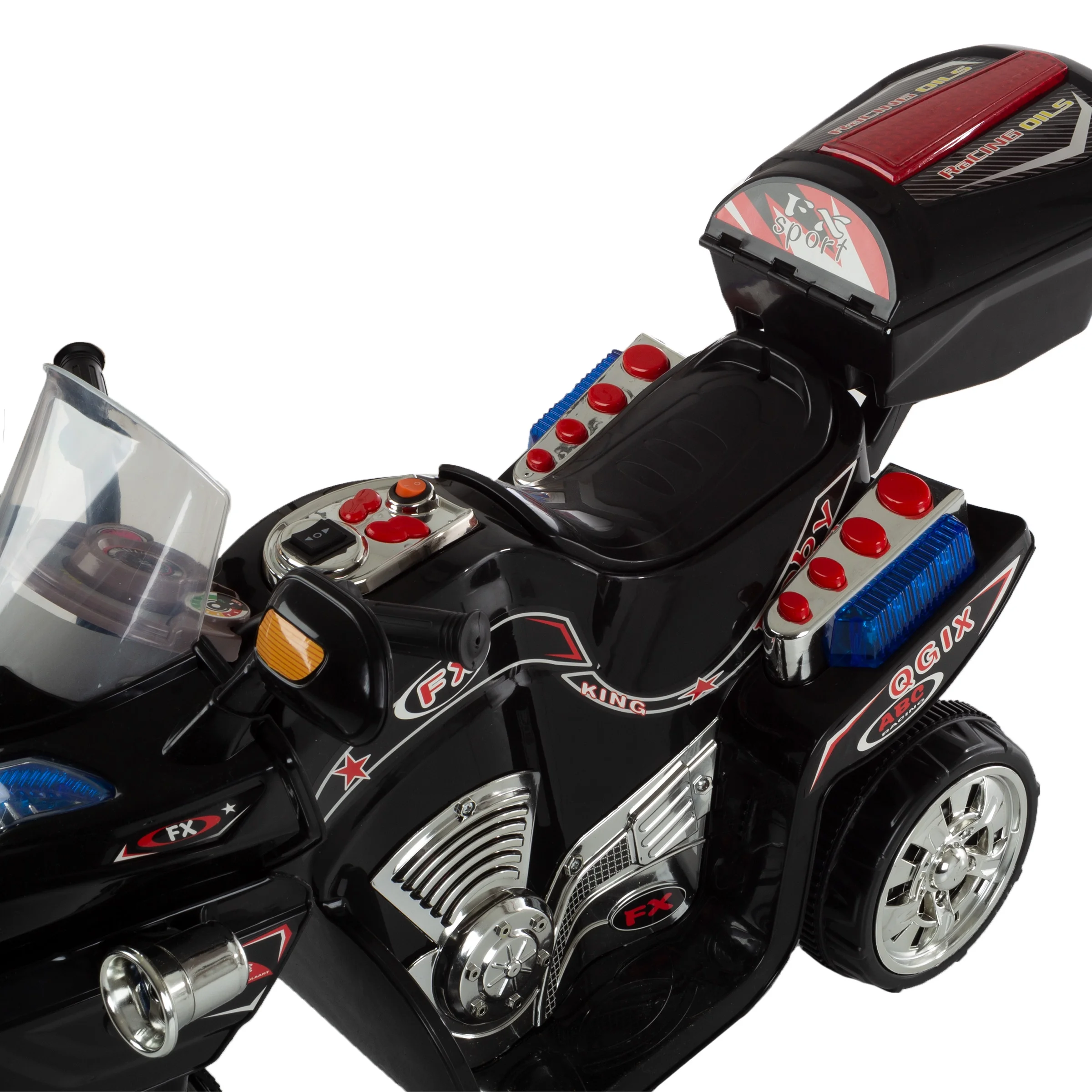 MOTORCYCLE FOR KIDS – The motorcycle for kids aged 3-6 is lightweight and features a compact design for easy transport, perfect for both indoor and outdoor playing on any hard, flat surface. REALISTIC FEATURES – This toddler motorcycle has forward and reverse functions, working headlights, decals, sound effects, a storage compartment, and a top speed of 1.75mph. EASY TO RIDE – Charge the included 6V battery according to the included electric bike for kids’ instruction manual – then simply just turn it on, press the pedal, and go. SAFE AND DURABLE – Made from rugged high-quality plastics and carbon steel that can hold up to 45lbs, the motorcycle toys are free of banned phthalates. MATERIALS – Plastic and Carbon Steel; Specs: 6V Battery, 15W Motor, 4.5ah. DIMENSIONS – (L) 34.65” x (W) 15.35” x (H) 22.83”. COLOR – Black.
