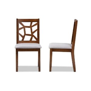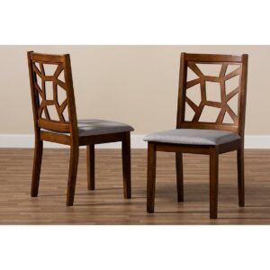 Baxton Studio Abilene Mid-Century Grey Fabric Upholstered and Walnut Brown Finished Dining Chair Set of 2