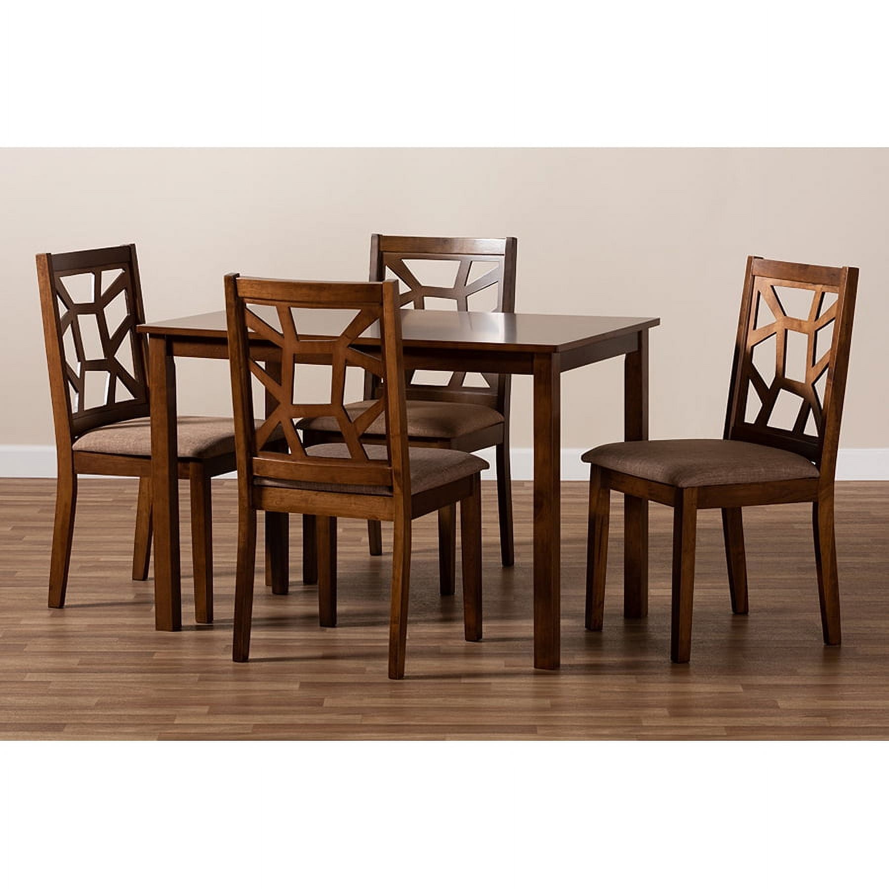 Baxton Studio Abilene Mid-Century Light Brown Fabric Upholstered and Walnut Brown Finished 5-Piece Wood Dining Set