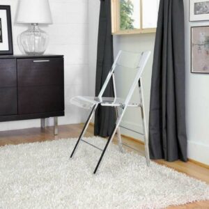 Baxton Studio Acrylic Foldable Chair (Set of 2) Acrylic folding chair constructed of chromed steel, ergonomically sculpted back, rubber feet to prevent scratching wood floors, foldable for easy storage.
