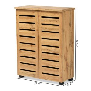 Baxton Studio Adalwin Modern and Contemporary Oak Brown Finished Wood 2-Door Shoe Storage Cabinet