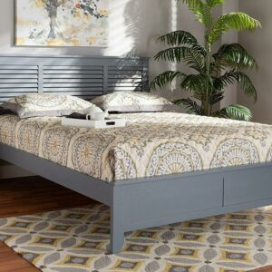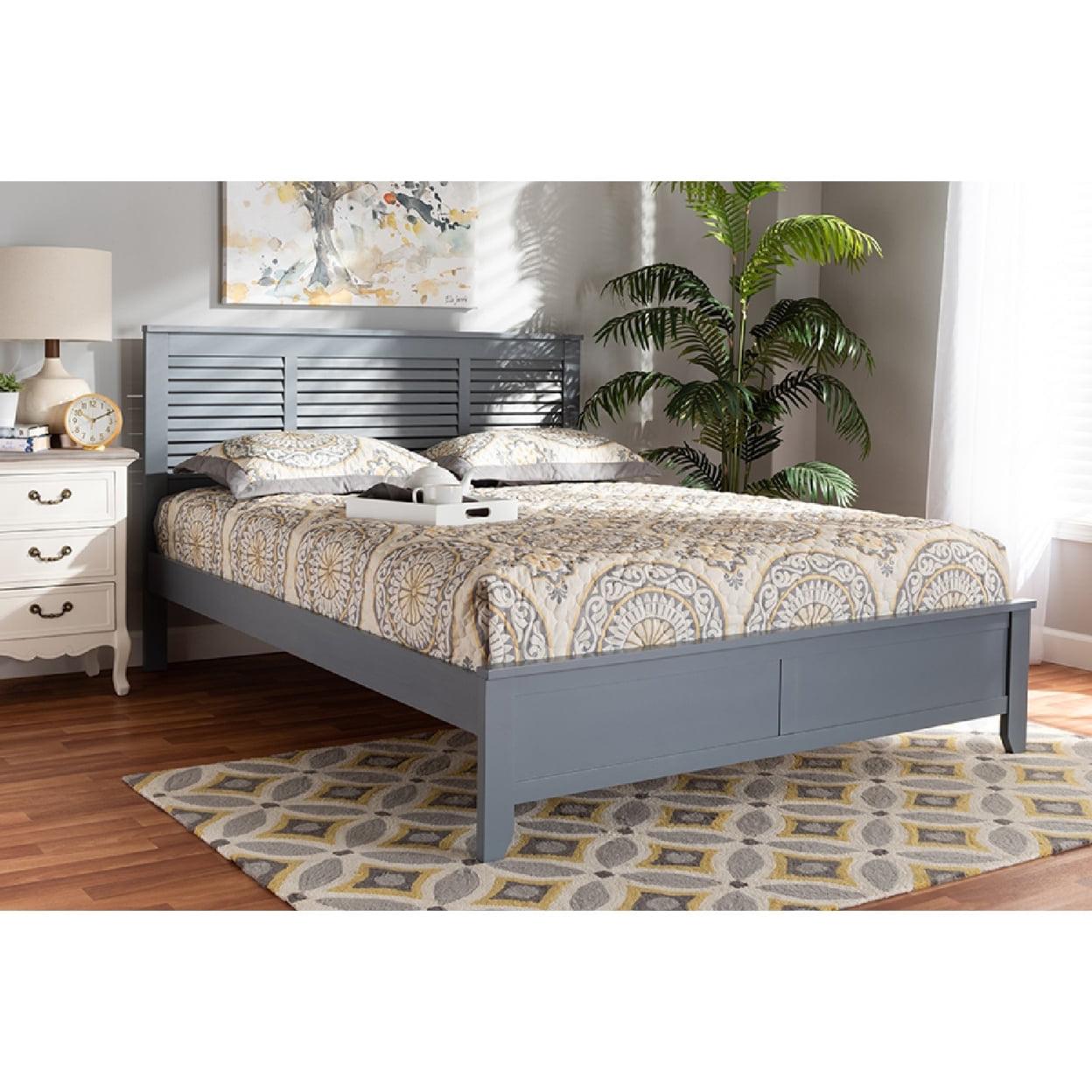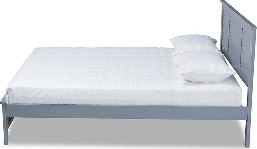 Baxton Studio Adela Modern and Contemporary Grey Finished Wood Full Size Platform Bed Create a charming beach-inspired retreat in your bedroom with the Adela bed. Crafted from wood, the Adela displays a modern Grey finish. The shutter design on the headboard lends a relaxed feel, while inset detailing at the footboard adds a touch of refinement. Tapered legs complete the look. The Adela bed is made in Malaysia and requires assembly.