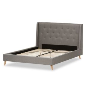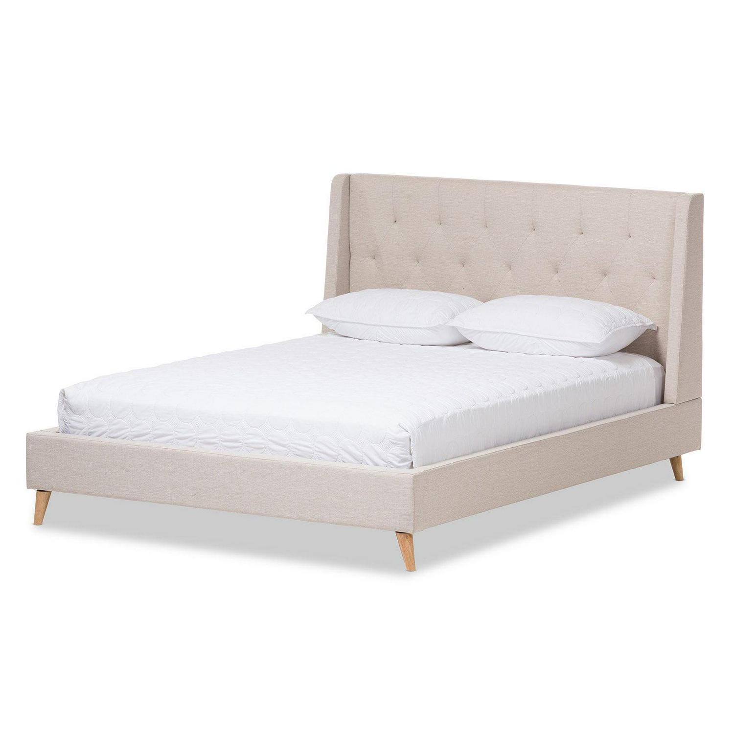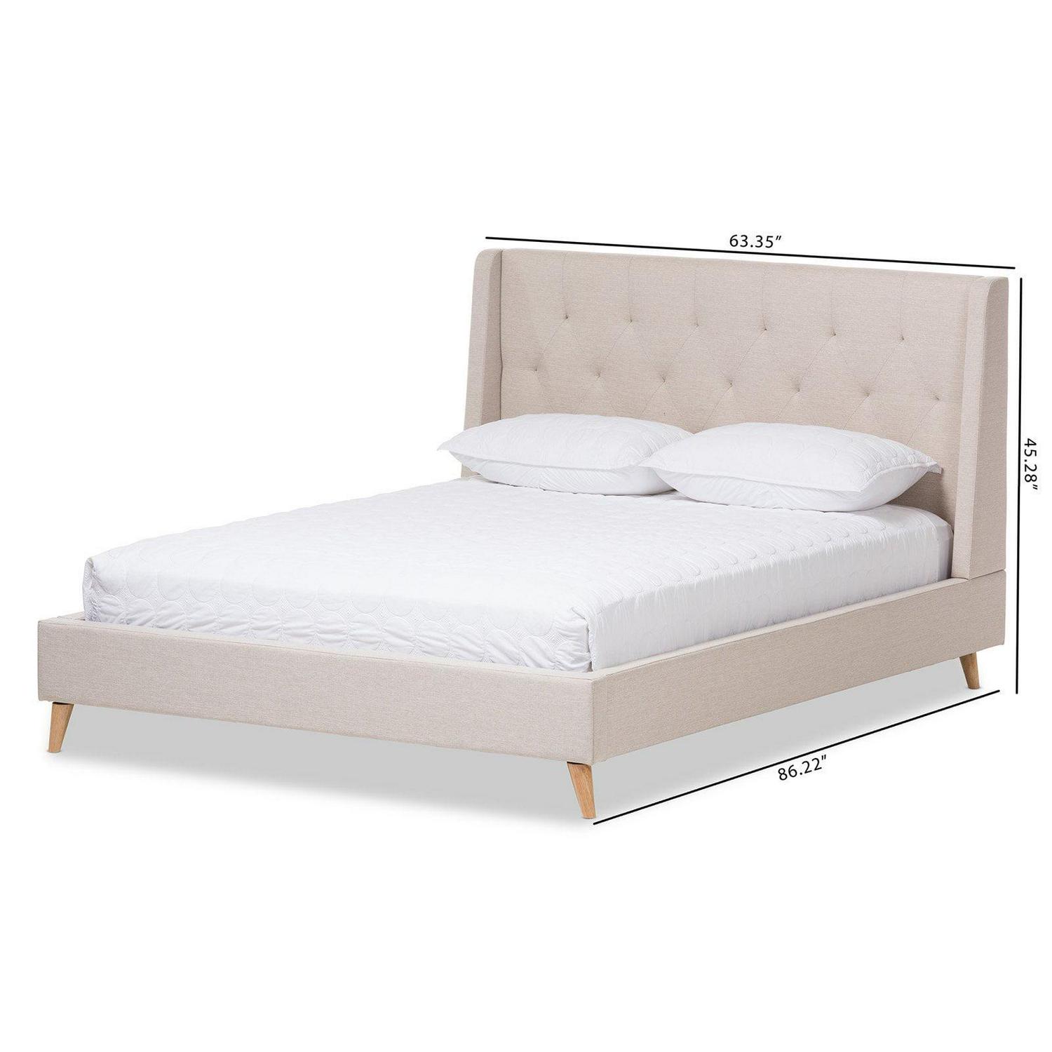 Baxton Studio Adelaide Retro Modern Light Beige Fabric Upholstered Queen Size Platform Bed