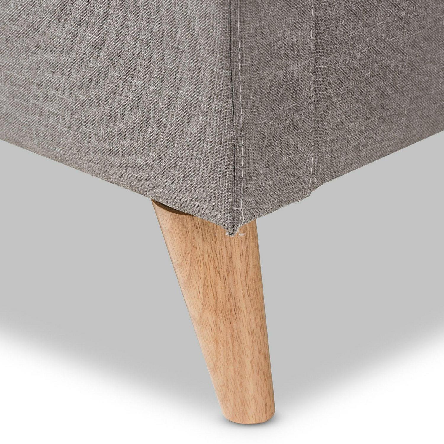 Resonate a resurgent aesthetic in your bedroom with the wingback frame and luxe upholstery of the Adelaide queen size platform bed. Constructed of solid wood and plywood frame with MDF for a strong and sturdy structure, the Adelaide features wood legs for ultimate sturdiness and a superior support structure. Upholstered in quality blend of polyester fabric with resilient quality to last over the padded bed frame, the wood slats provide ample support to your mattress while the structure is screwed together for stability. Attached headboard provides a supportive backboard to your bedding as well as a stylish button-tufting feature to give indulgent good looks to your bedroom. Wingback design for mid-century modern style-lines and tapered, natural finishing legs to give resurgent accents to your contemporary aesthetic. Neutral hue in a light and uplifting oatmeal tone for effortless style to complement your modern bedroom with its lasting good looks. Made in Malaysia, the Adelaide requires assembly.