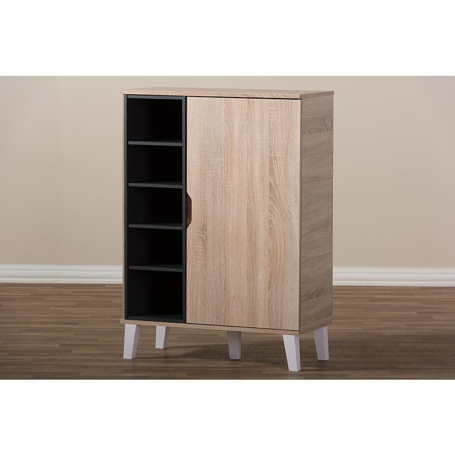 Baxton Studio Adelina Mid-Century Modern 1-Door Oak and Gray Wood Shoe Cabinet