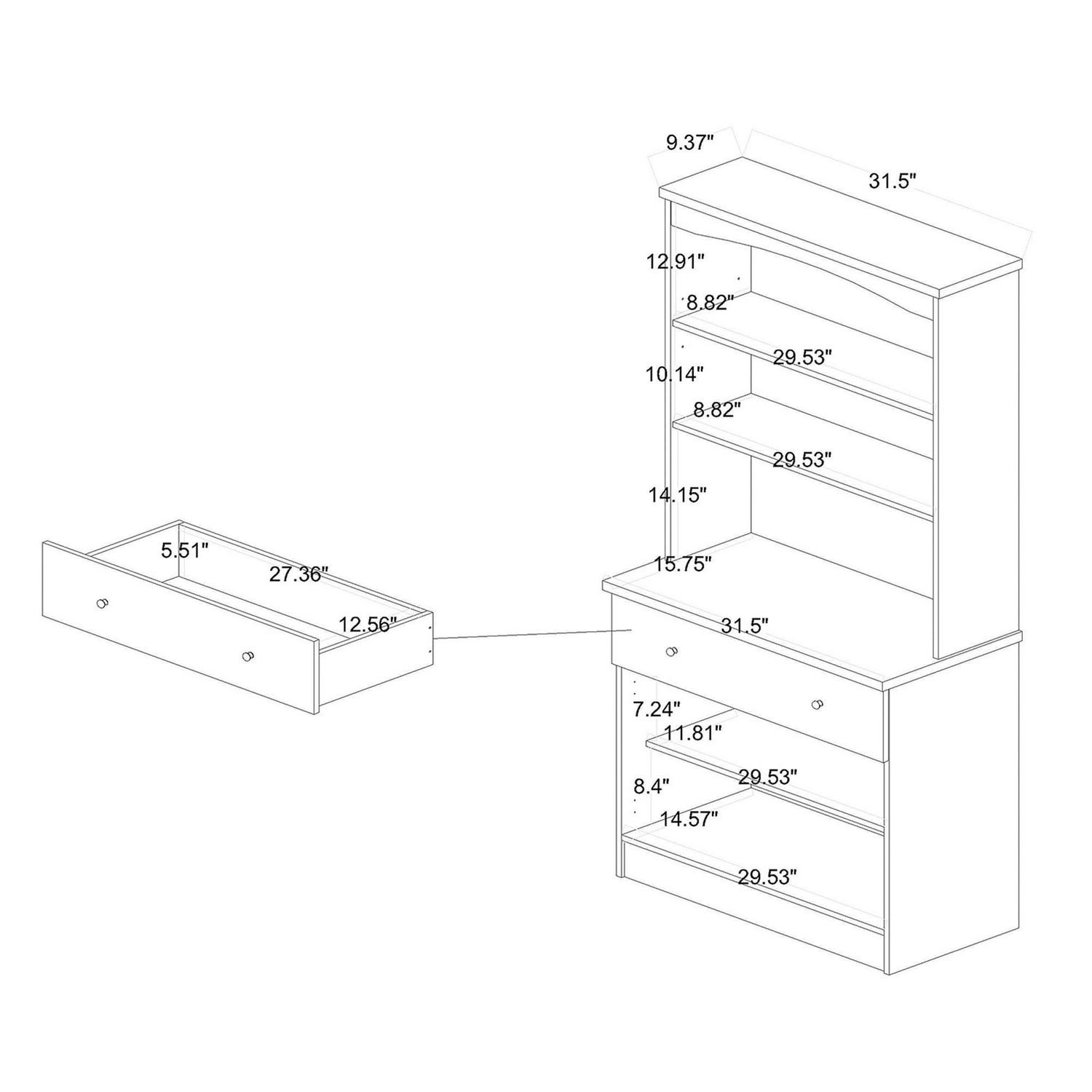 Constructed from engineered wood and metal Oak brown finish Three (3) open shelves and two (2) shelves behind the doors One (1) drawer Black finished metal knobs Anti-topple kit included Assembly required Product Weight: 94.6 Pound Package Weight: 103.4 Pound Dimensions: 70.2″ High x 31.5″ Wide x 15.75″ Deep; Drawer: 5.51″ High x 27.36″ Wide x 12.56″ Deep; Top Shelf Behind Door: 7.24″ High x 29.53″ Wide x 11.81″ Deep; Bottom Shelf Behind Door: 8.40″ High x 29.53″ Wide x 14.57″ Deep; Top Open Shelf: 12.91″ H x 29.53″ Wide x 8.82″ Deep; Middle Open Shelf: 10.14″ High x 29.53″ Wide x 8.82″ Deep; Bottom Open Shelf: 14.15″ H x 31.50″ Wide x 15.75″ Deep; Product Color: Oak Brown/Black Product Composition: MDF/Metal