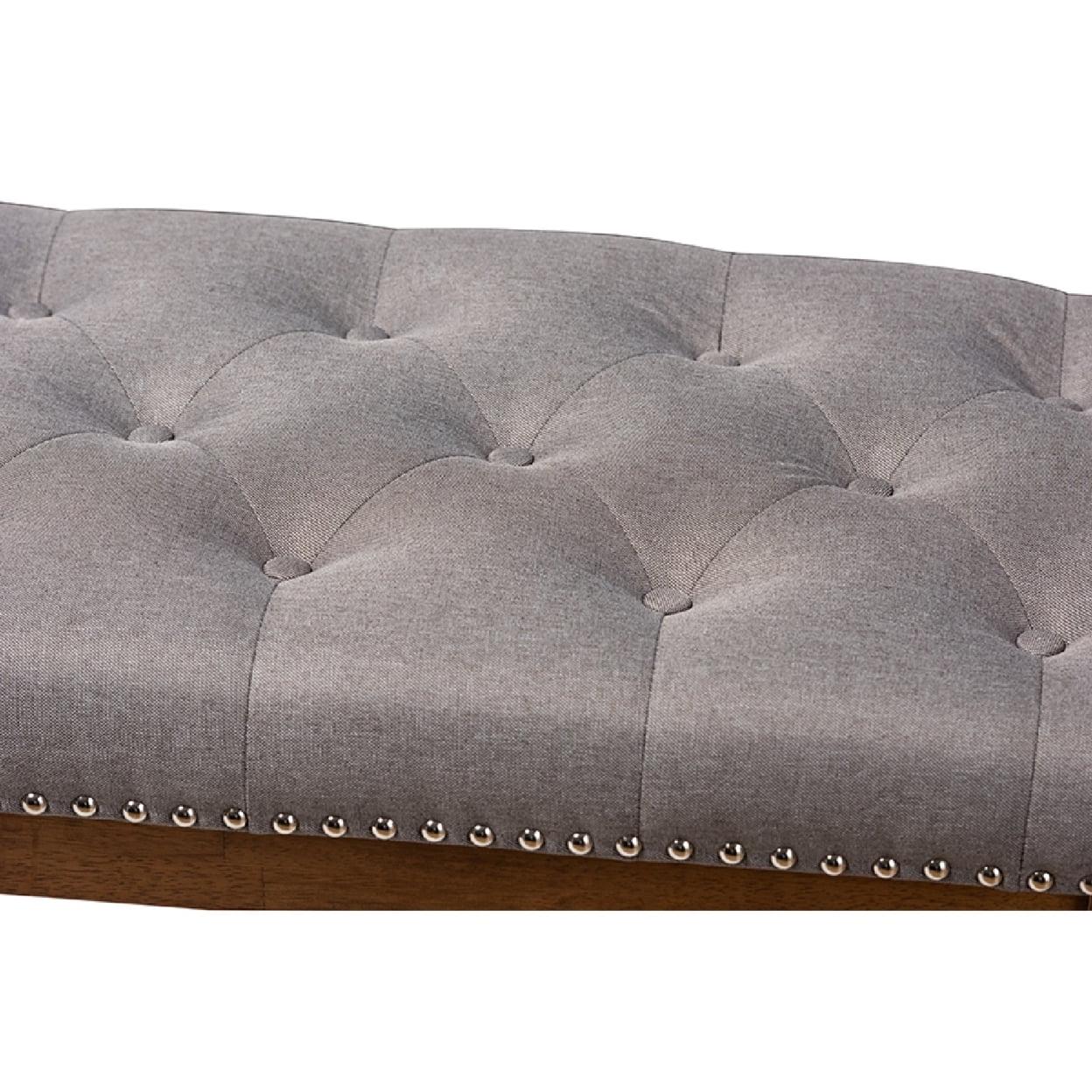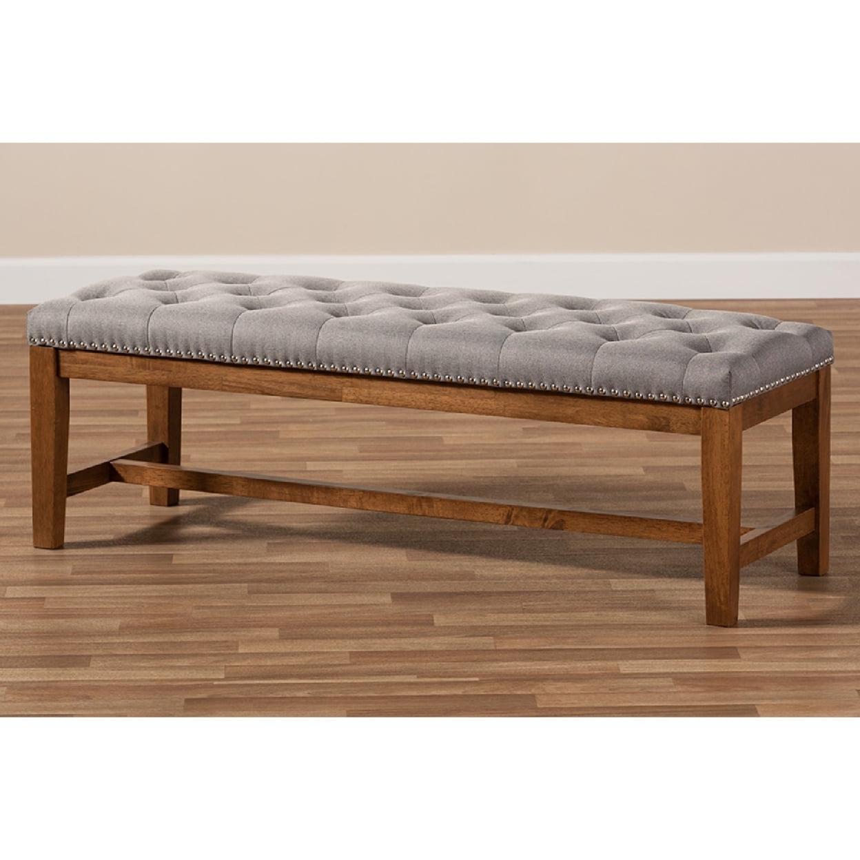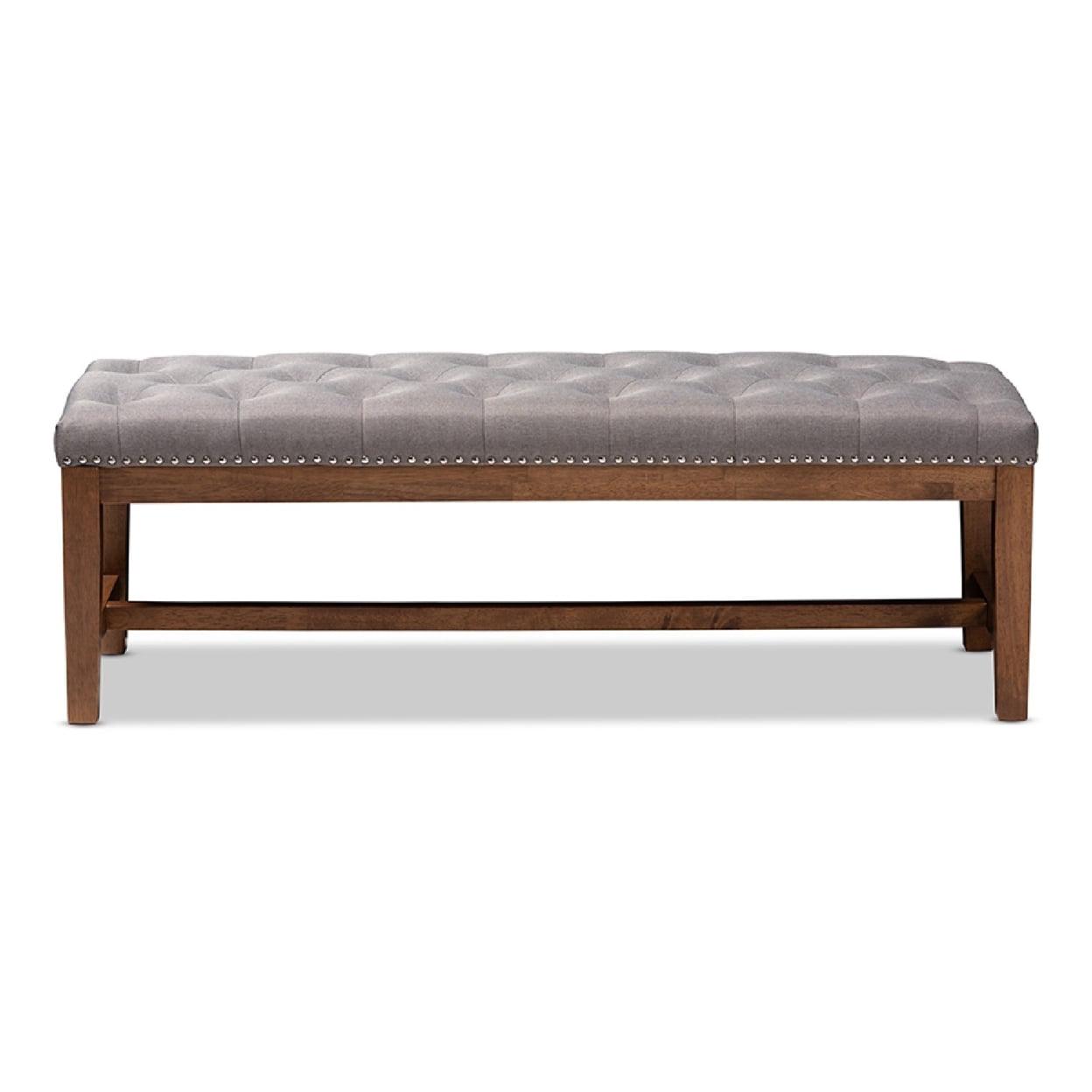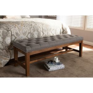 Baxton Studio Ainsley Modern and Contemporary Grey Fabric Upholstered Walnut Finished Solid Rubberwood Bench The Ainsley bench is that last essential piece of furniture that will bring your space together. The modern and contemporary-inspired design is versatile, and easy to coordinate with a wide range of d cor. The sturdy, solid rubberwood frame is inviting with its walnut brown finishing. The Ainsley features a foam padded seat, upholstered in a chic grey fabric. The seat is button-tufted for a sophisticated and lasting style. Add extra seating to your entryway, livingroom, or even your guest room and bed room with the Ainsley. Made in Malaysia, the bench requires assembly.