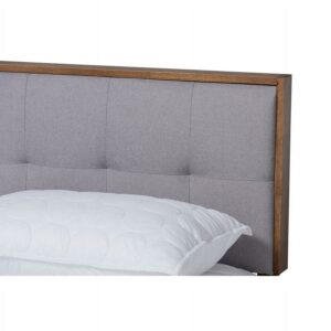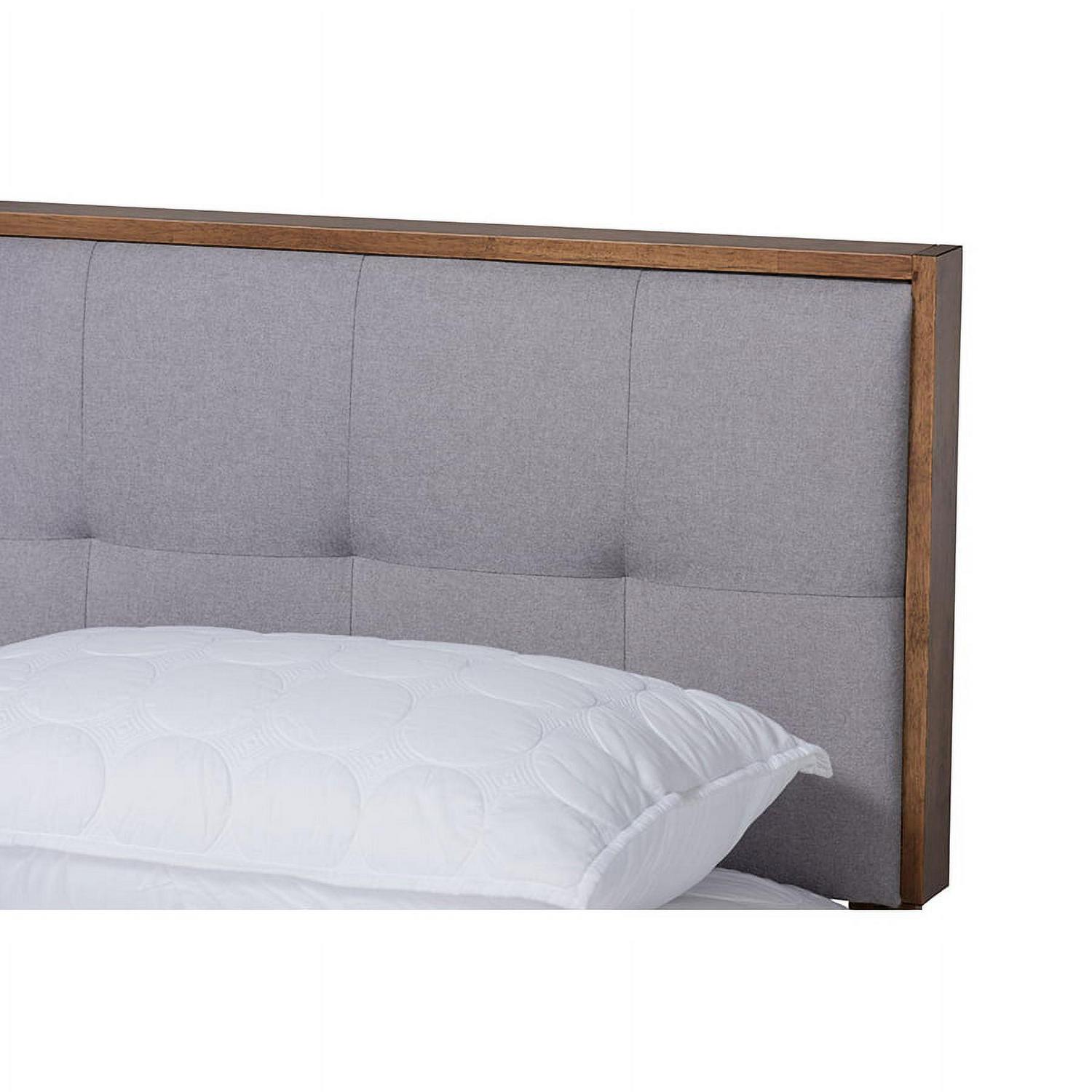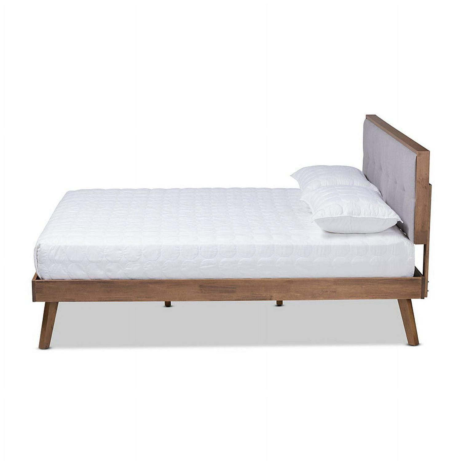 Baxton Studio Alke Mid-Century Modern Light Grey Fabric Upholstered Walnut Brown Finished Wood Queen Size Platform Bed