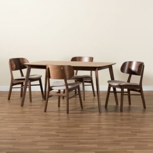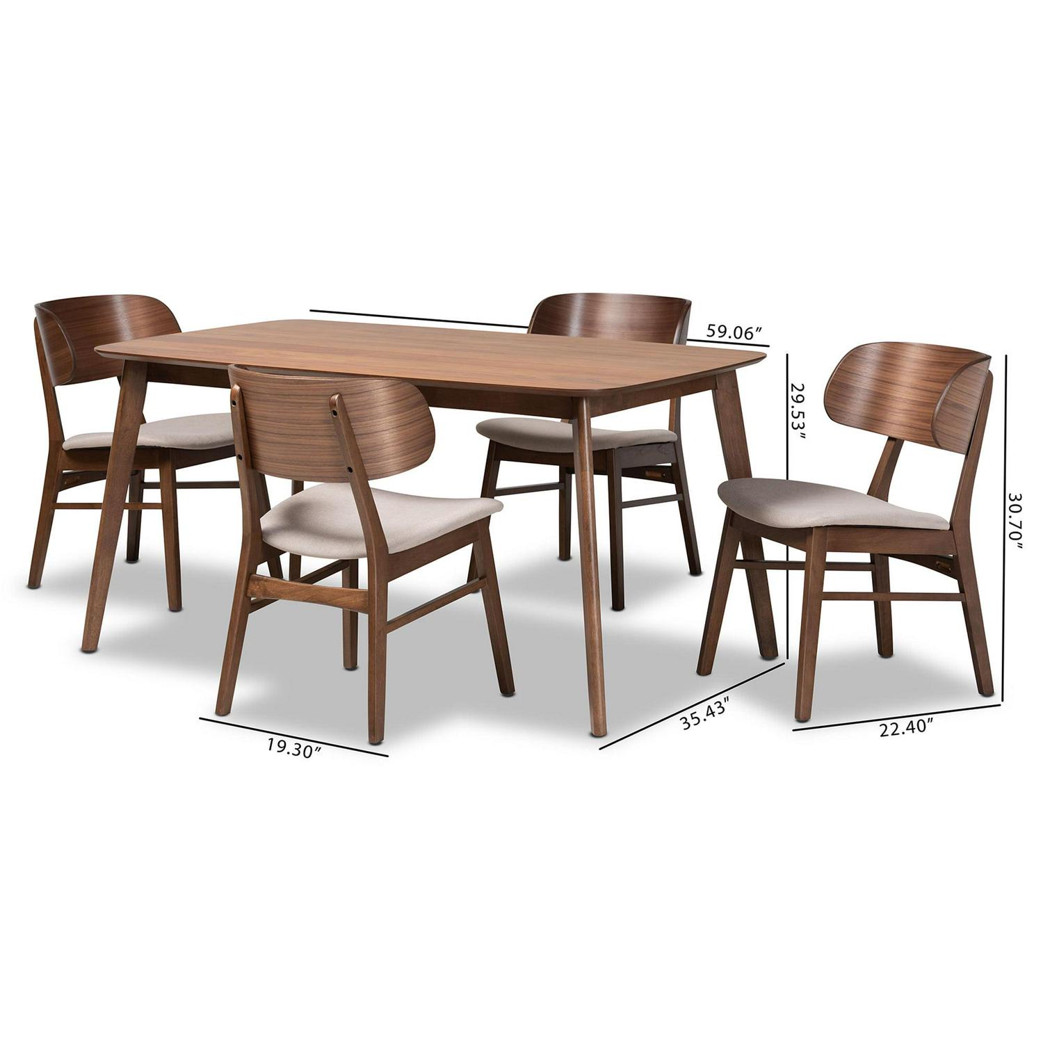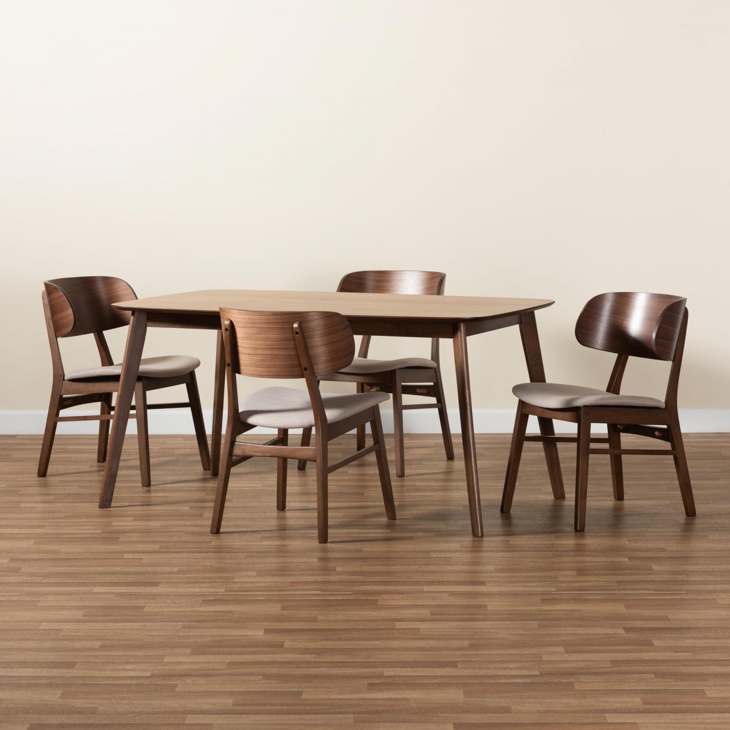 Baxton Studio Alston Mid-Century Modern Beige Fabric Upholstered and Walnut Brown Finished Wood 5-Piece Dining Set
