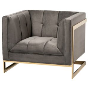 Baxton Studio Ambra Glam / Luxe Upholstered Button Tufted Velvet Armchair