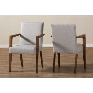 Baxton Studio Andrea Mid-Century Modern Greyish Beige Upholstered Wooden Armchair (Set of 2)