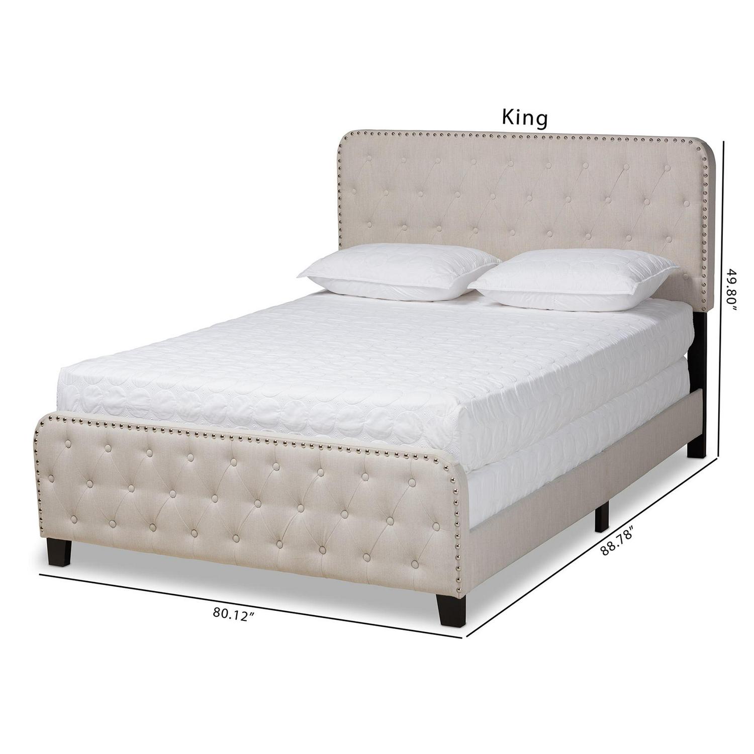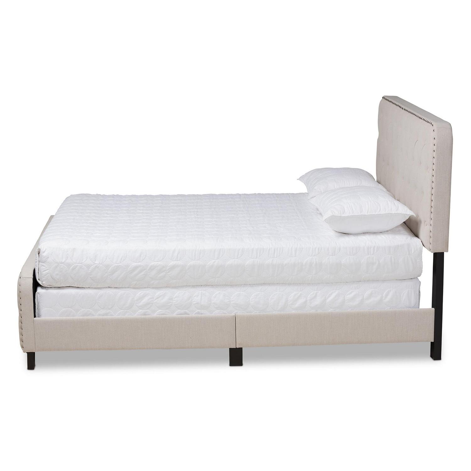 Baxton Studio Annalisa Modern Transitional Beige Fabric Upholstered Button Tufted Queen Size Panel Bed
