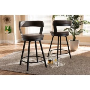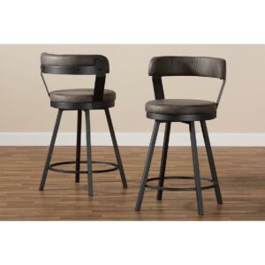 Baxton Studio Arcene Rustic and Industrial Grey Fabric Upholstered Counter Stool Set of 2