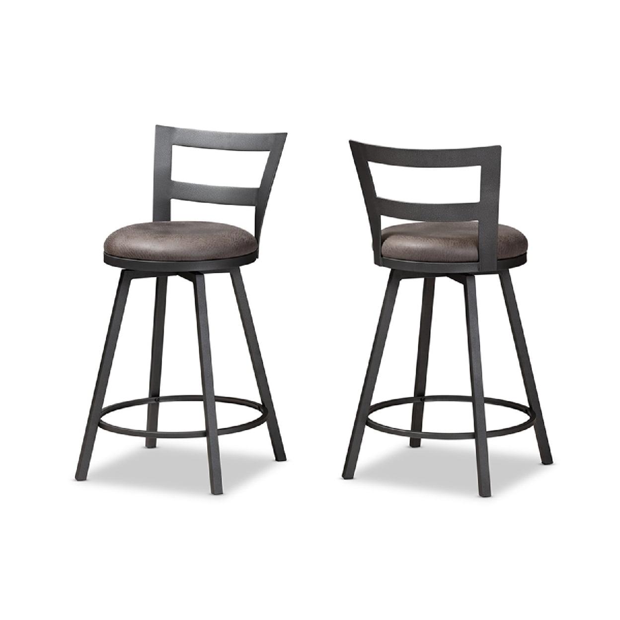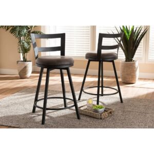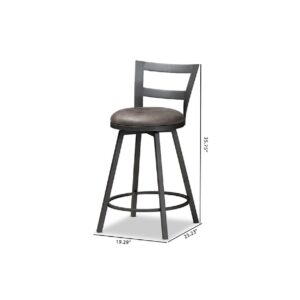 Baxton Studio Arjean Rustic and Industrial Grey Fabric Upholstered Counter Stool Set of 2
