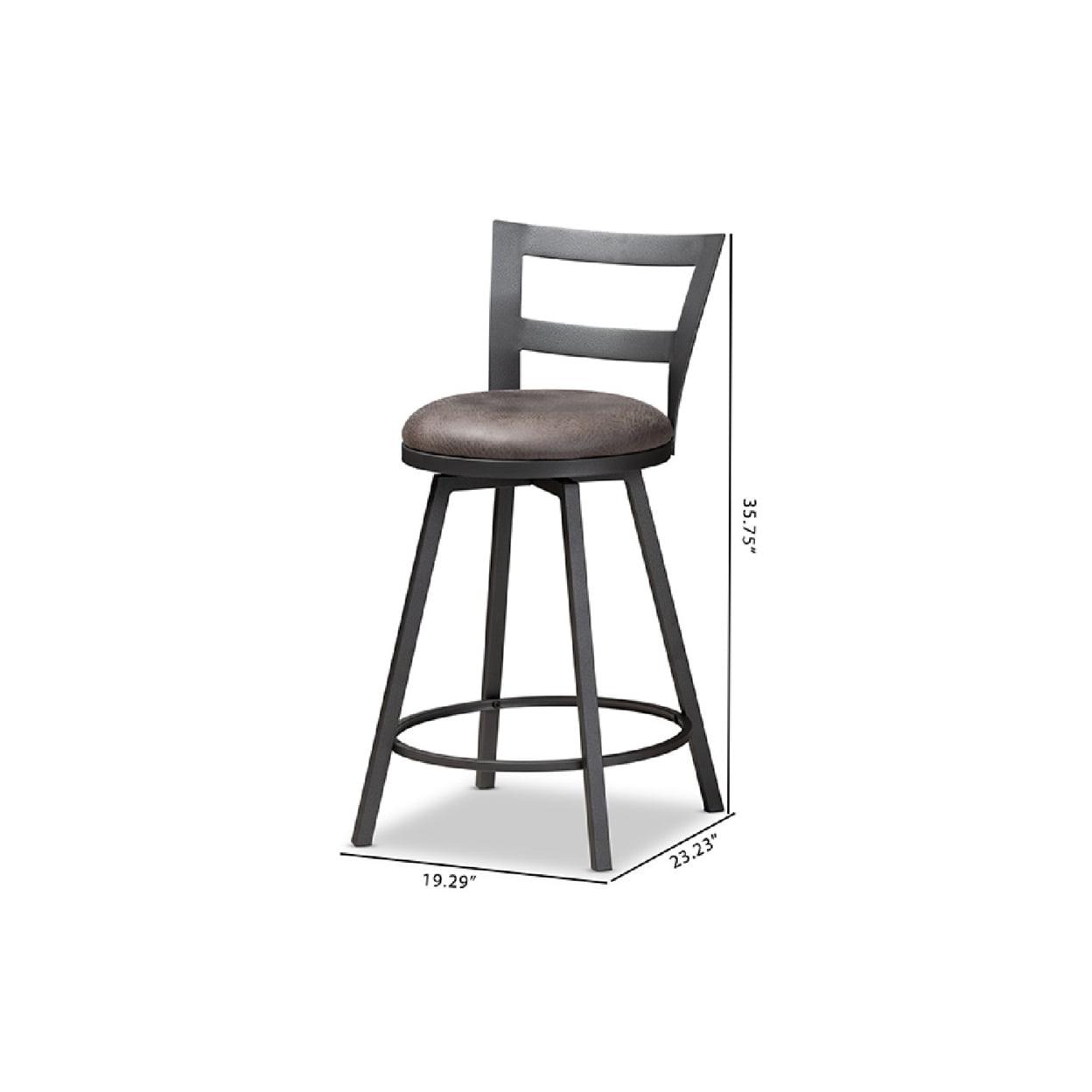 Baxton Studio Arjean Rustic and Industrial Grey Fabric Upholstered Counter Stool Set of 2 Add lasting style and charm to your space with the Arjean pub stool. The minimalist silhouette and neutral colorings are indicative of the stools rustic and industrial-inspired design. The Arjeans sturdy metal frame is finished in an antique grey. The pub stool features circular, suede-like fabric upholstered seats with foam padding for hours of comfort. The chair back of the Arjean is an open work design, which is slightly curved and winged. These pub stools will look right at home in your dining room, kitchen, or breakfast nook. Made in China, the Arjean requires assembly.