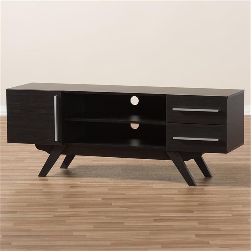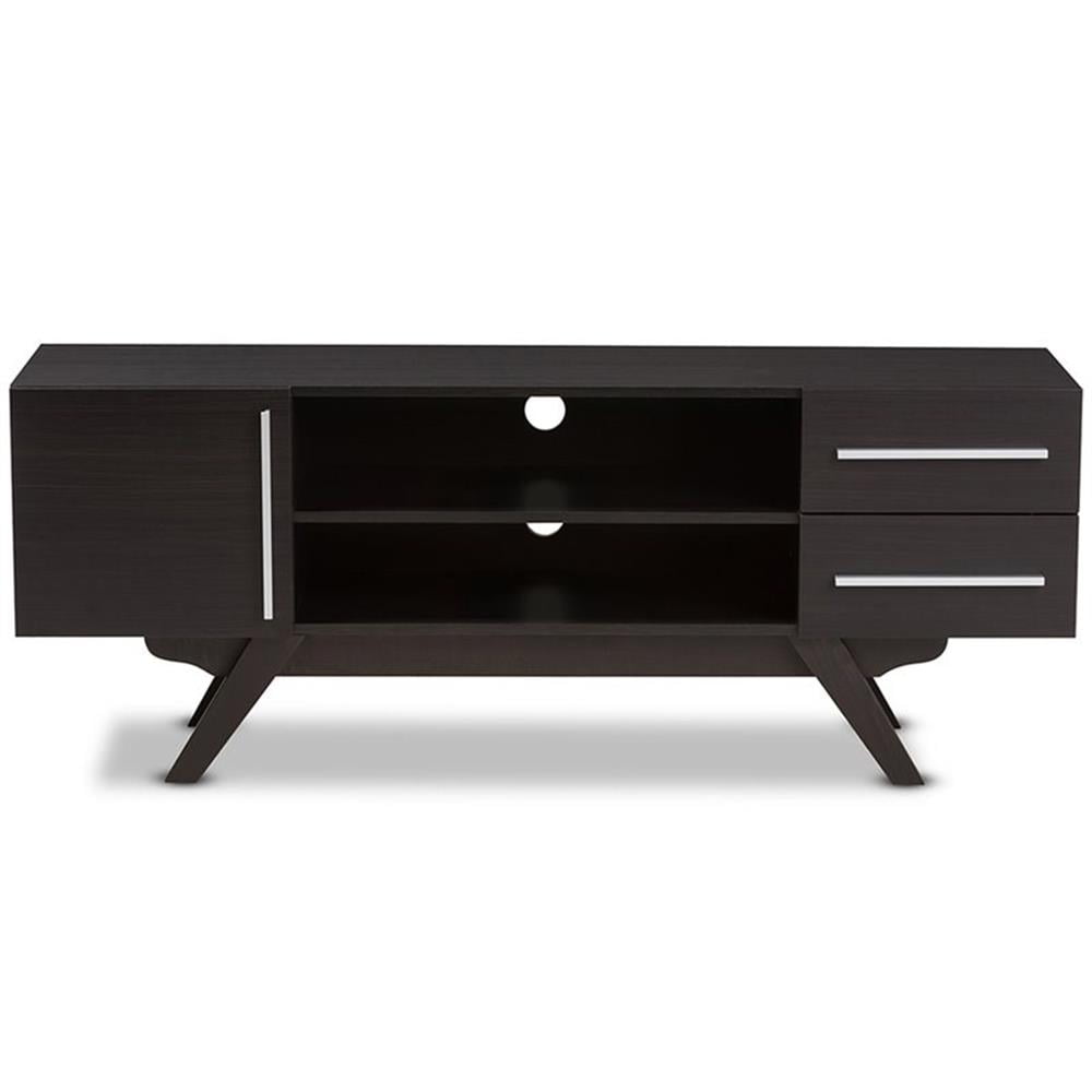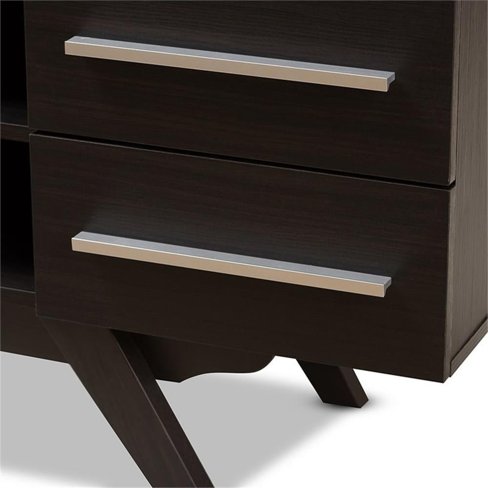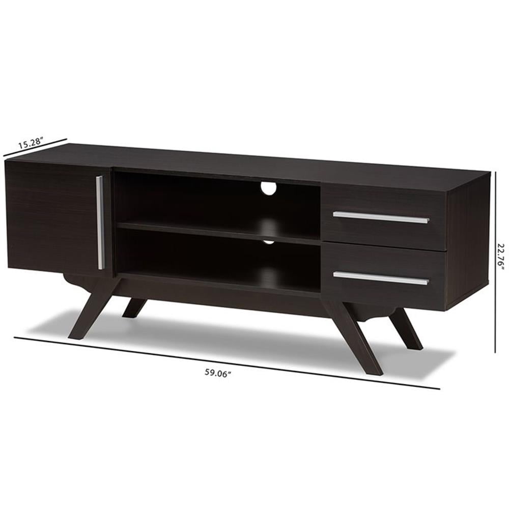 Baxton Studio Ashfield Mid-Century Modern Dark Brown Finished Wood TV Stand
