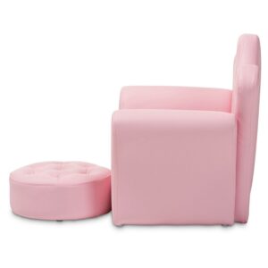 Baxton Studio Ava Modern and Contemporary Pink Faux Leather 2-Piece Kids Armchair and Footrest Set