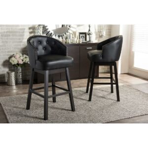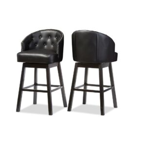 Baxton Studio Avril Modern and Contemporary Black Faux Leather Tufted Swivel Barstool with Nail heads Trim (Set of 2)