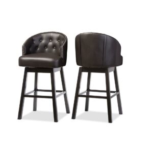 Baxton Studio Avril Modern and Contemporary Brown Faux Leather Tufted Swivel Barstool with Nail heads Trim (Set of 2)