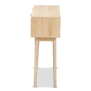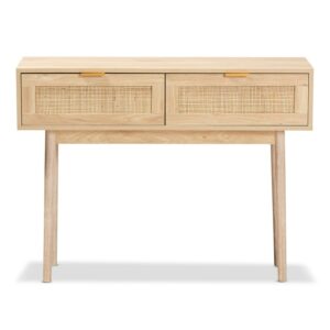 Baxton Studio Baird Mid-Century Modern Light Oak Brown Finished Wood and Rattan 2-Drawer Console Table