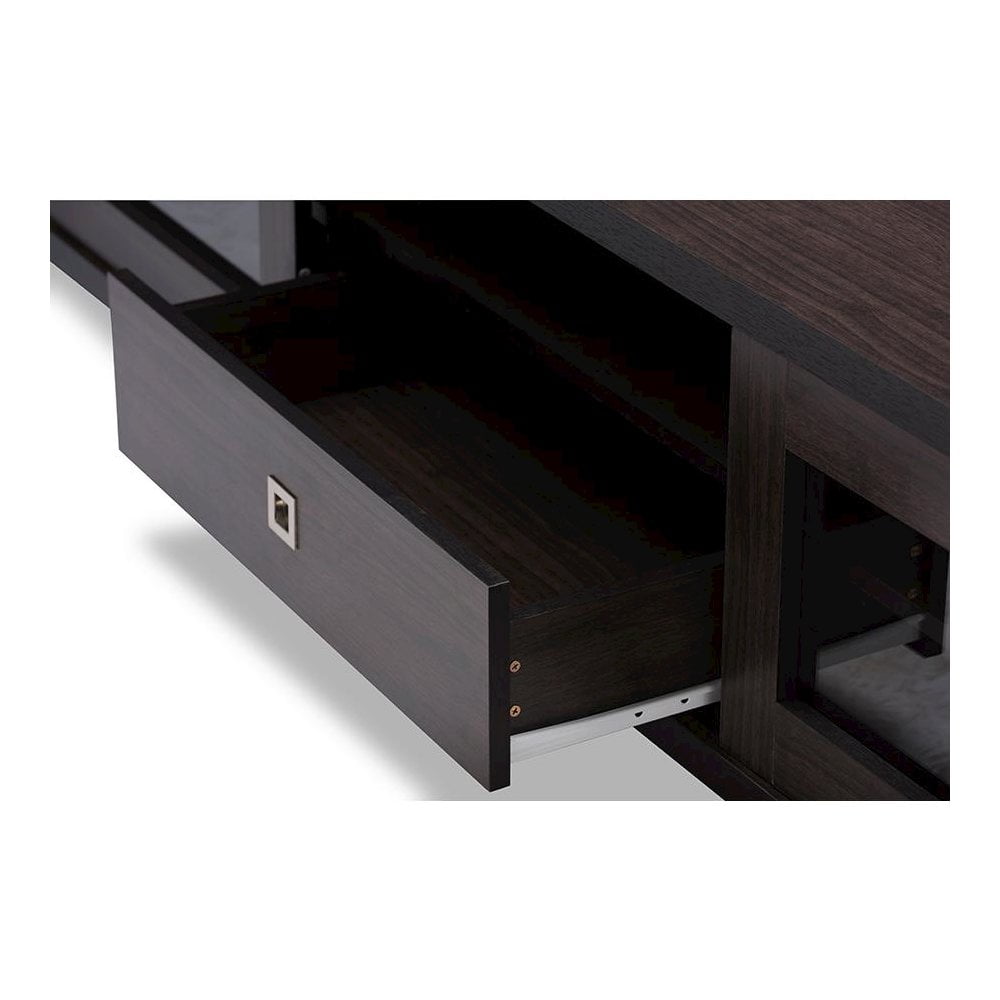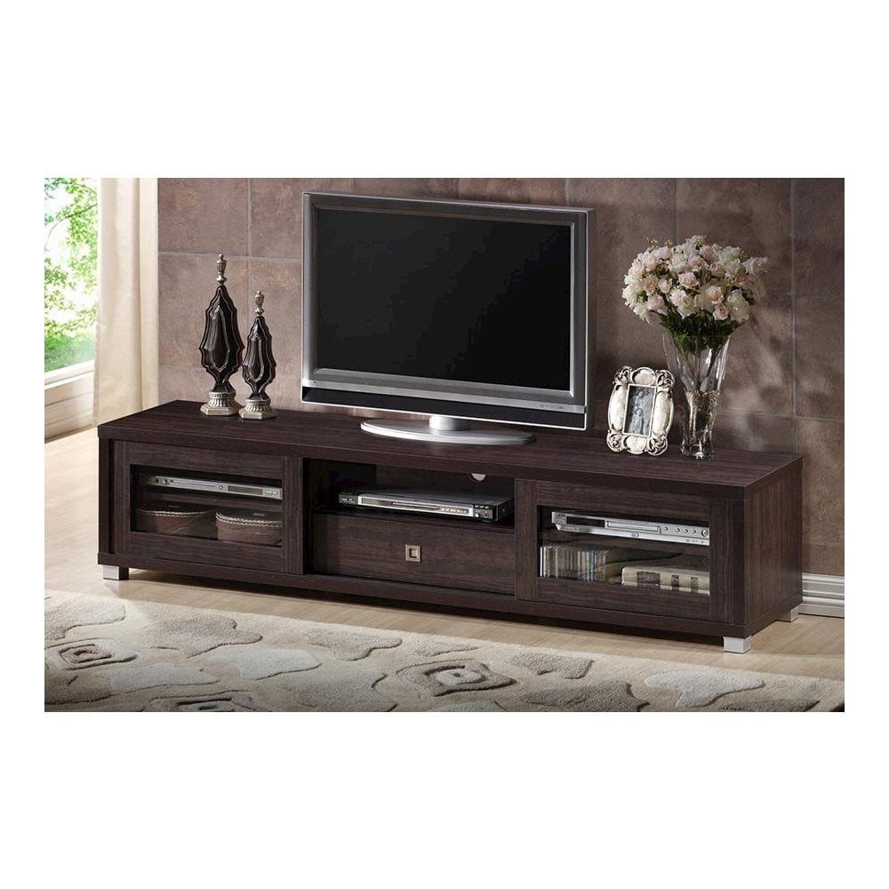 Baxton Studio Beasley 70 – Inch Dark Brown TV Cabinet with 2 Sliding Doors and Drawer