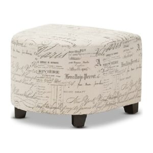 Baxton Studio Benson French Script Patterned Fabric Club Chair and Ottoman Set Maximum classic. Take a load off and lounge around with this stunningly built Benson club chair with ottoman in French script-patterned fabric. Constructed of hardwood solids with modern accents, these chairs and ottomans are sure to catch the eye of anyone who likes a good place to kick back. High-density foam cushions and encased coils provide ideal seating comfort. Two-piece package includes accent chair and ottoman, as shown. Made in China, the living room chair set comes fully assembled.