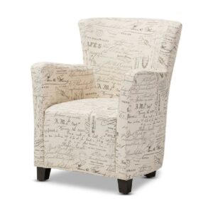 Baxton Studio Benson French Script Patterned Fabric Club Chair and Ottoman Set
