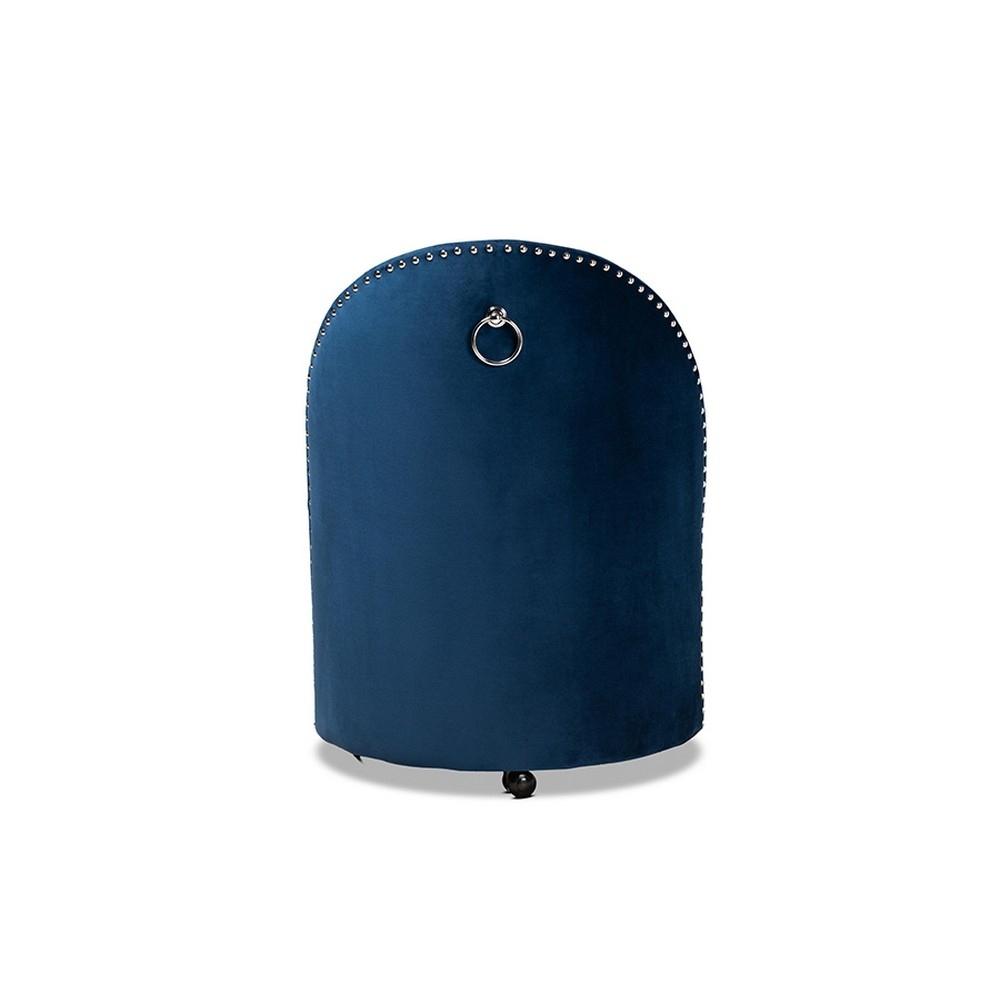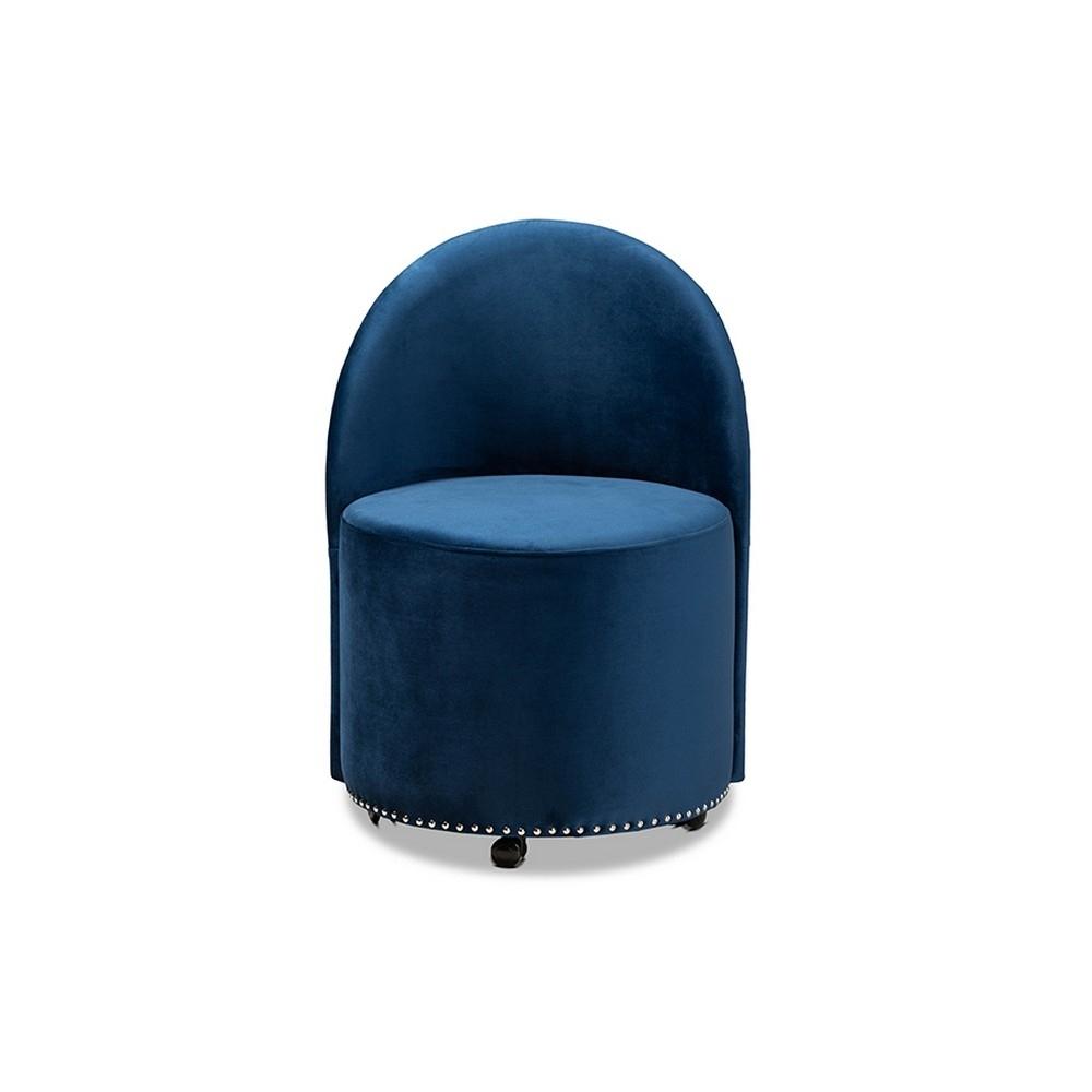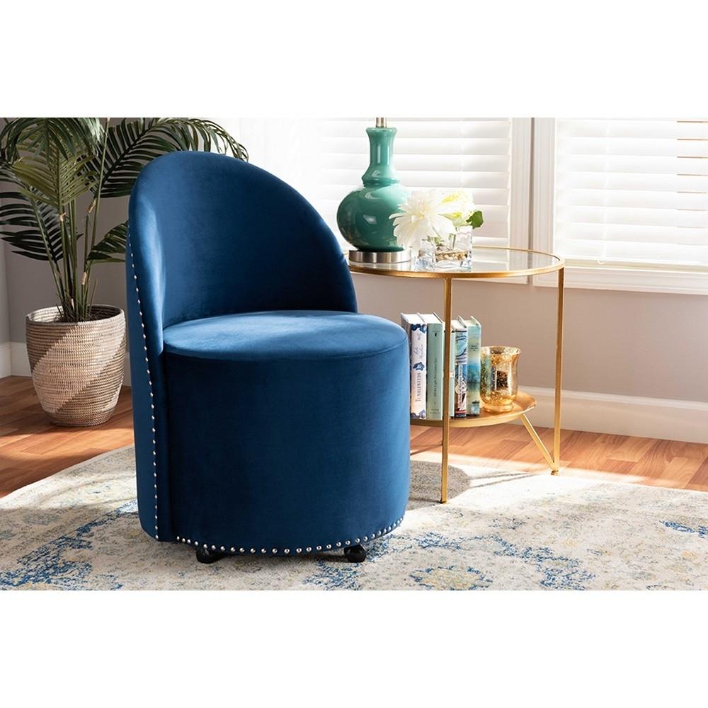 Baxton Studio Bethel Glam and Luxe Navy Blue Velvet Fabric Upholstered Rolling Accent Chair