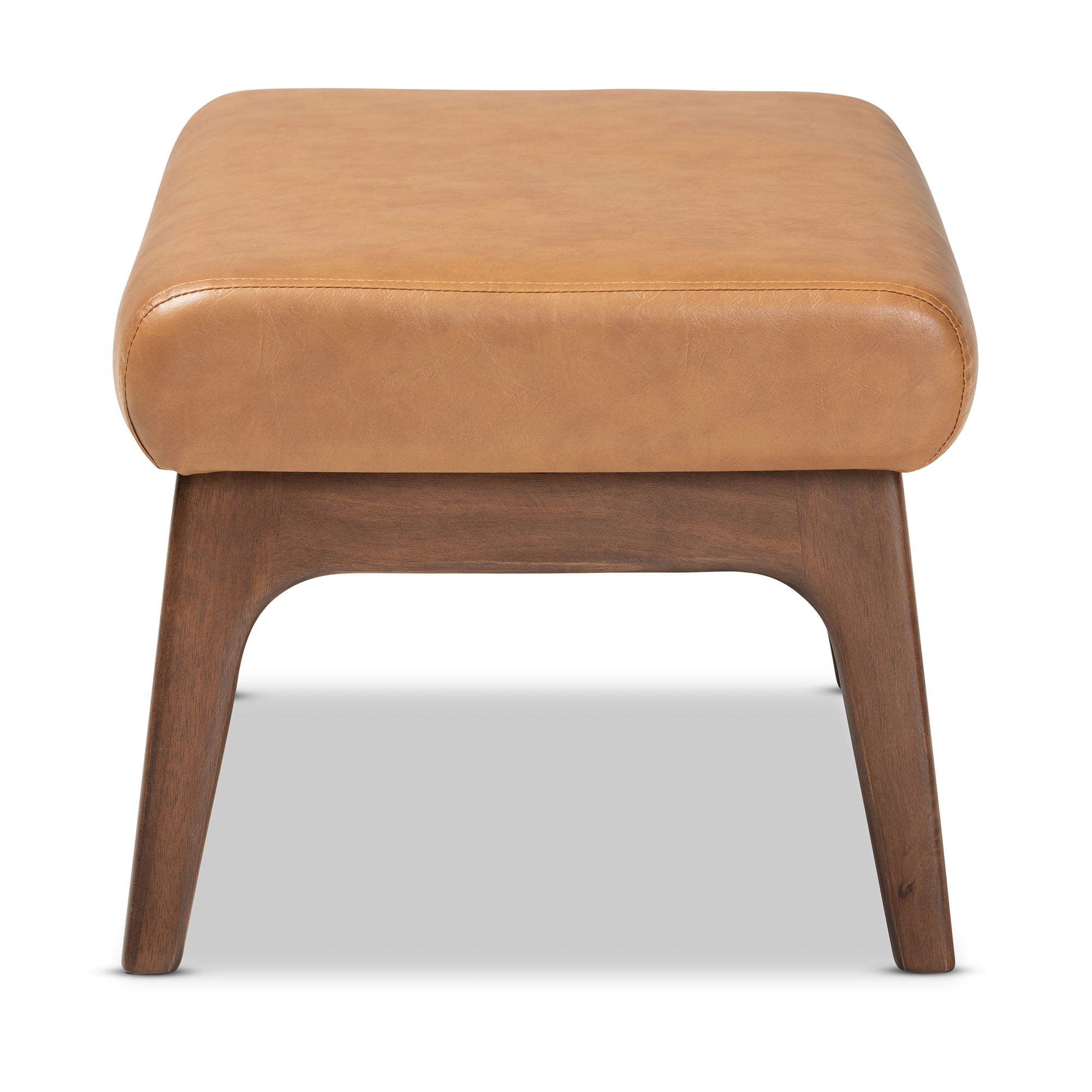 Baxton Studio Bianca Mid-Century Modern Walnut Brown Finished Wood and Tan Faux Leather Effect Ottoman