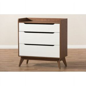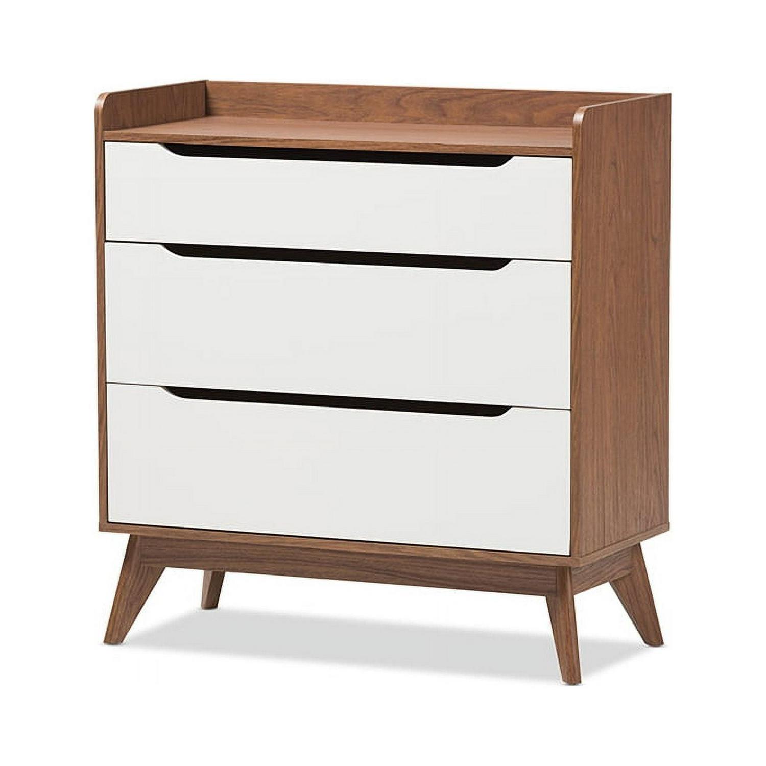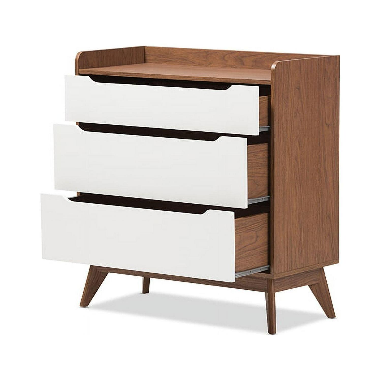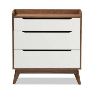 Baxton Studio Brighton Mid-Century Modern White and Walnut Wood 3-Drawer Storage Chest