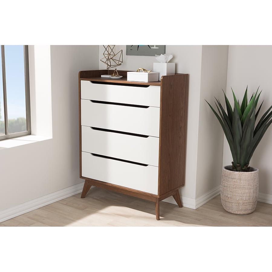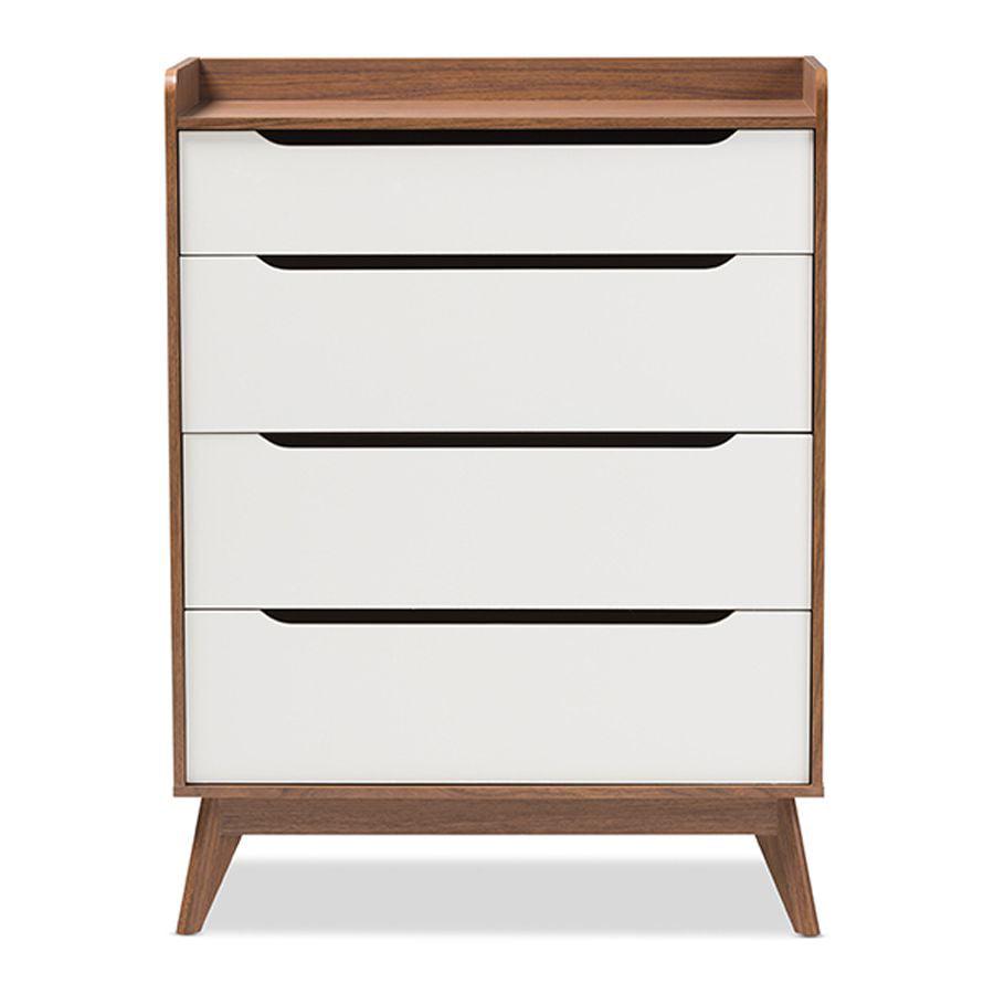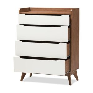 Baxton Studio Brighton Mid-Century Modern White and Walnut Wood 4-Drawer Storage Chest