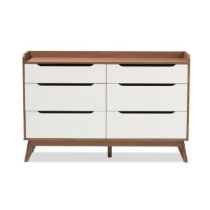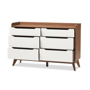 Baxton Studio Brighton Mid-Century Modern White and Walnut Wood 6-Drawer Storage Dresser