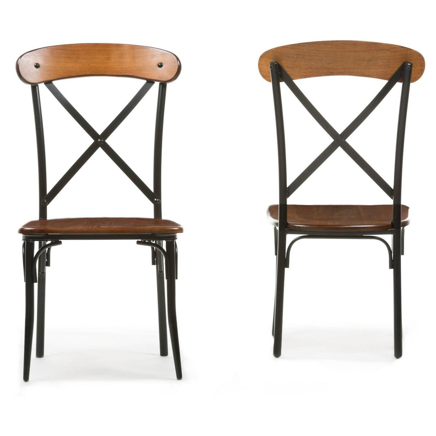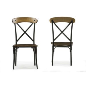 Handsome and versatile, this rustic pair with contemporary flair fits in nicely at the casual kitchen or elegant dining room. The Baxton Studio Broxburn Dining Chair – Set of 2 includes chairs crafted from a tubular metal frame in antique black finish with distressed brown ash veneer wood accents on the seat and back for a vintage-industrial look. The attractive back features X-style slat details mirrored by the stretchers that add enhanced support to the slender legs. Matching dining table sold separately. Some assembly is required.