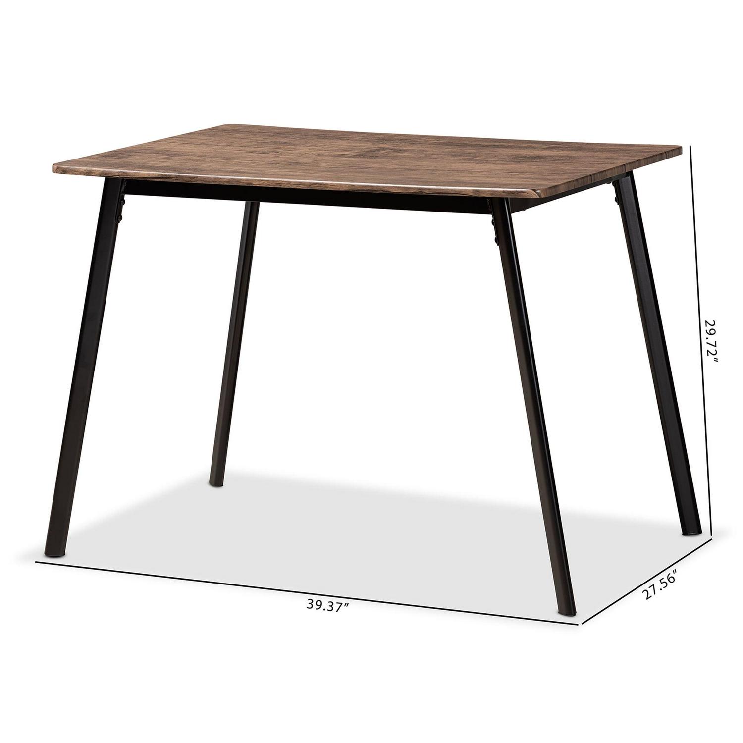 Baxton Studio Calder Mid-Century Modern Walnut Brown Finished Wood and Black Metal Dining Table