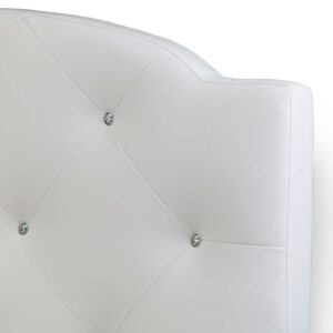 Understated elegance lies at the core of our Canterbury Wood and Leather Contemporary Queen-Size Bed. With its white faux-leather accenting, crystal tufted headboard and chrome legs, this contemporary platform bed recalls a time of opulence yet boasts a discount price tag. This seemingly impossible pairing makes the Canterbury a fantastic value in contemporary bedroom furniture.