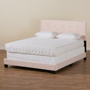 Baxton Studio Caprice Contemporary/Modern Velvet Tufted Panel Bed, Queen, Light Pink/Black