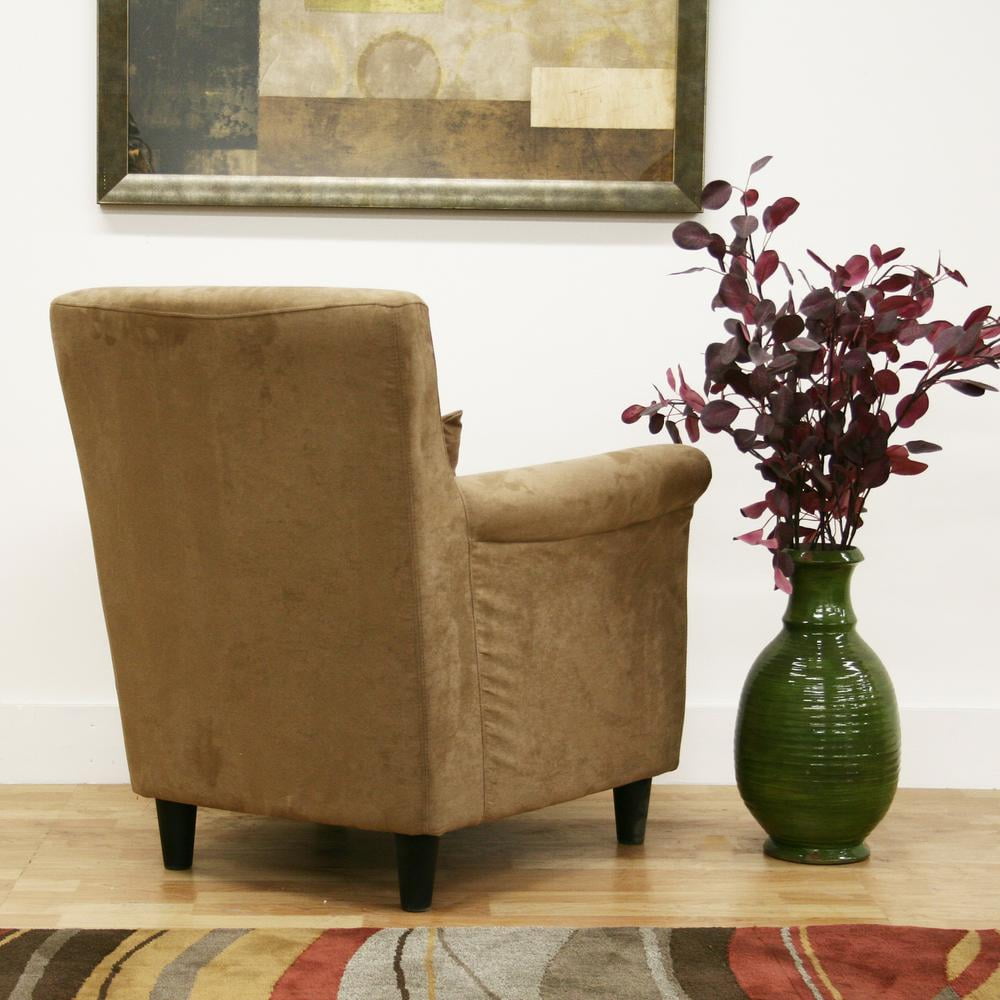 Simultaneously contemporary and elegant, this sandy tan microfiber club chair adds an effortless luxury to any living room. Foam cushioning, solid wood framing, and tapered cylindrical black plastic legs add comfort and style. Included is a matching pillow, which can be remove and use separately. Some assembly is required. Modern club chair Sandy tan microfiber Black plastic legs Wood frame Some assembly is required. Attached accent pillow Specifications: – Box 1 Height : 32.00 – UPC : 878445009588 – Attribute Depth (in) : 30 – Box 1 Depth : 32.00 – Attribute Dimensions (in) : Chair measures 31″ wide x 30″ deep x 33″ high. Seat height and depth is 17″. Arm height is 24″. – Box 1 Width : 32.00 – Brand : Baxton Studio – Box 1 Weight : 50.00 – Packing Time (days) : 2 – Delivery Time (days) : 7 – Length: 32.0 in, Width: 31.0 in, Height: 33.0 in