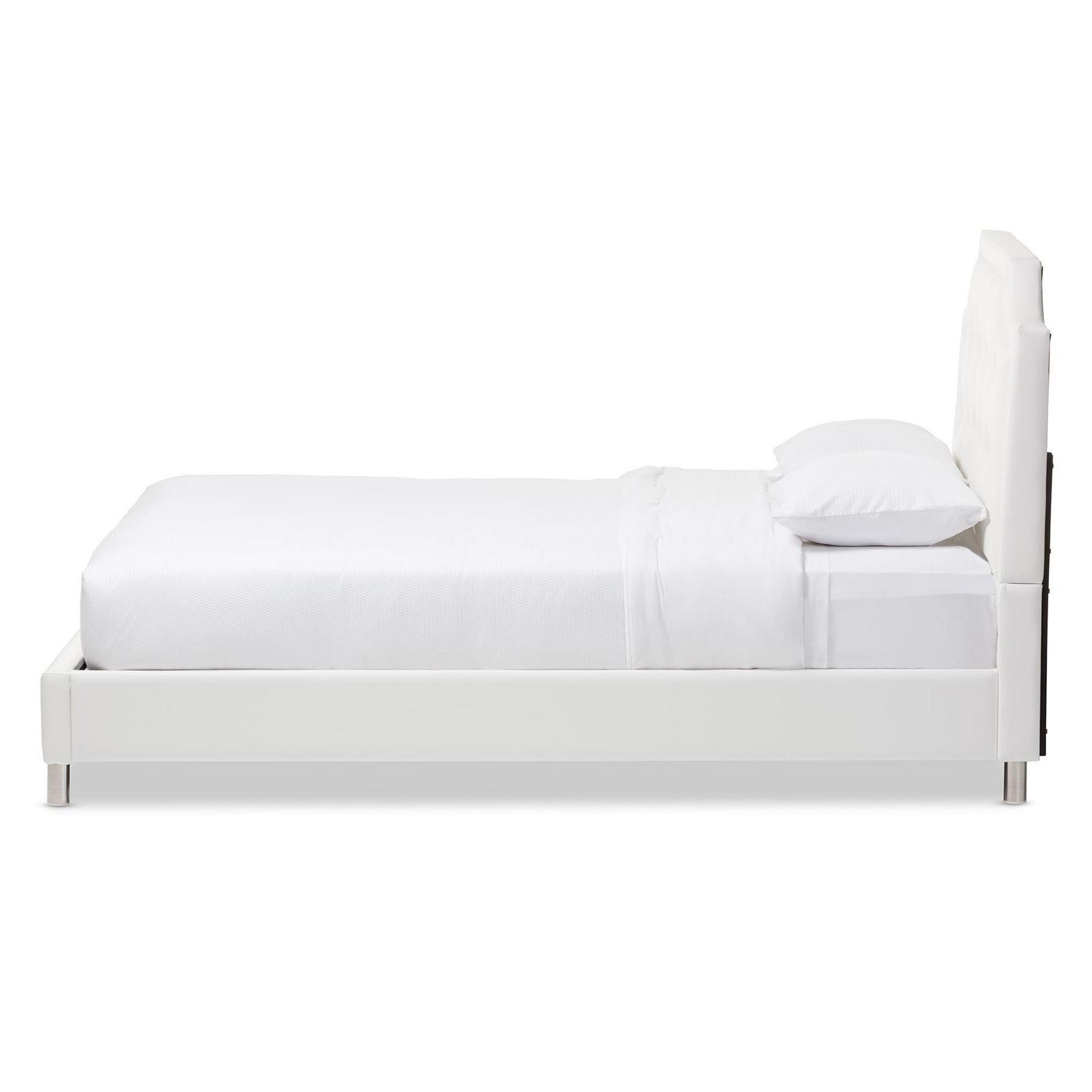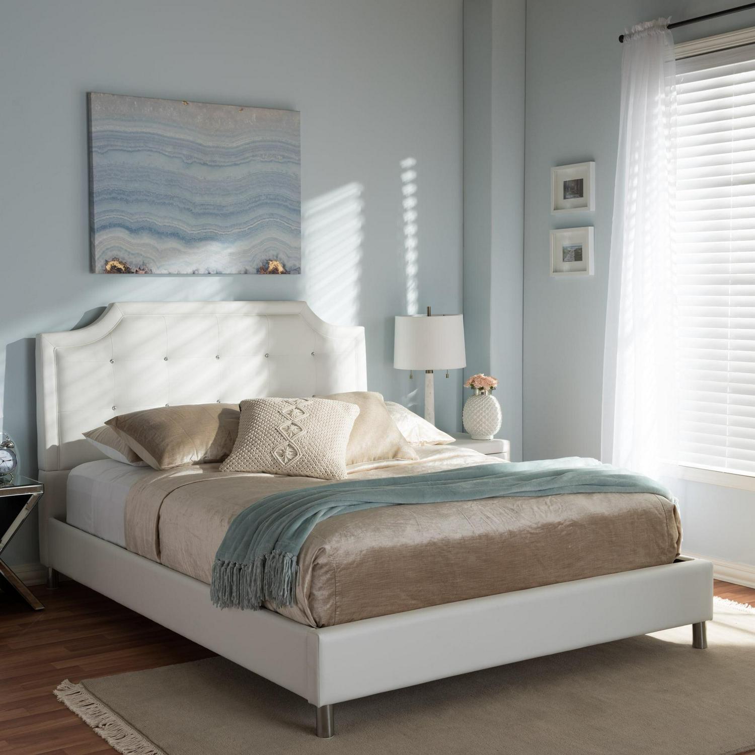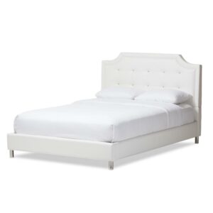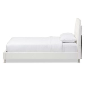 Baxton Studio Carlotta Modern Bed with Upholstered Headboard, Queen, White