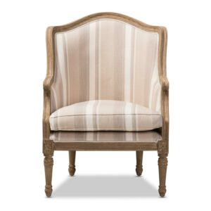 Charlemagne Traditional French Accent Chair-Oak (Brown Stripe)