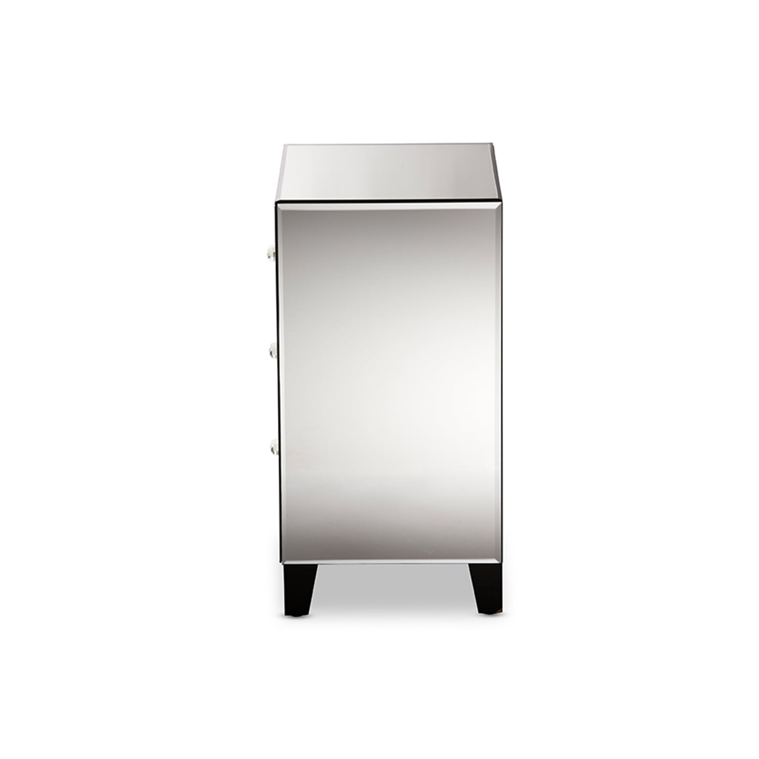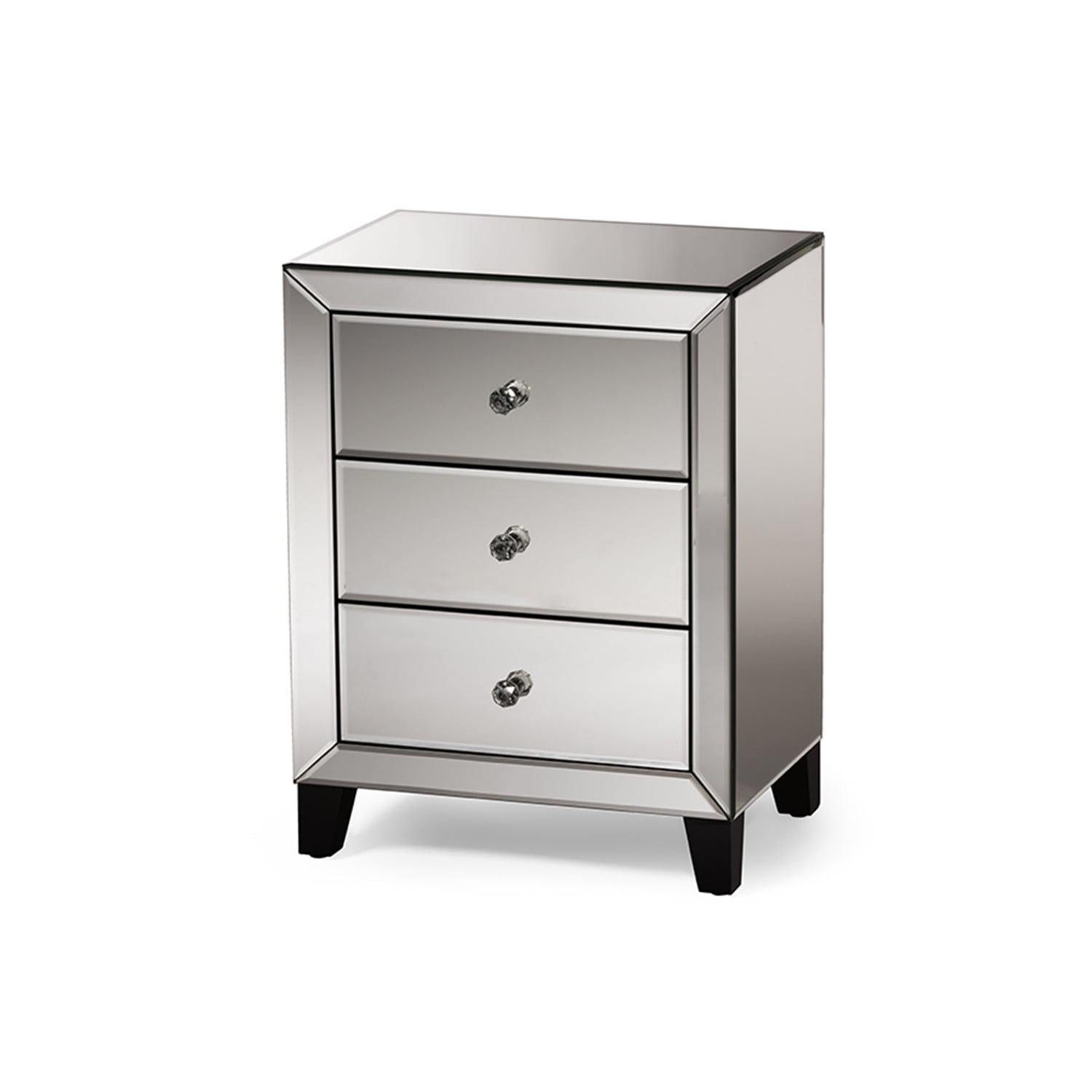Baxton Studio Chevron Modern and Contemporary Hollywood Regency Glamour Style Mirrored 3-Drawers End Table End Table