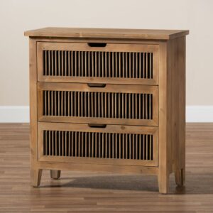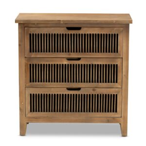 Baxton Studio Clement Rustic Transitional Medium Oak Finished 3-Drawer Wood Spindle Chest