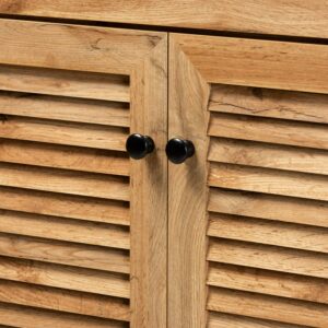 Baxton Studio Coolidge Modern and Contemporary Oak Brown Finished Wood 3-Door Shoe Storage Cabinet with Drawer