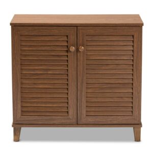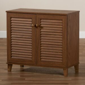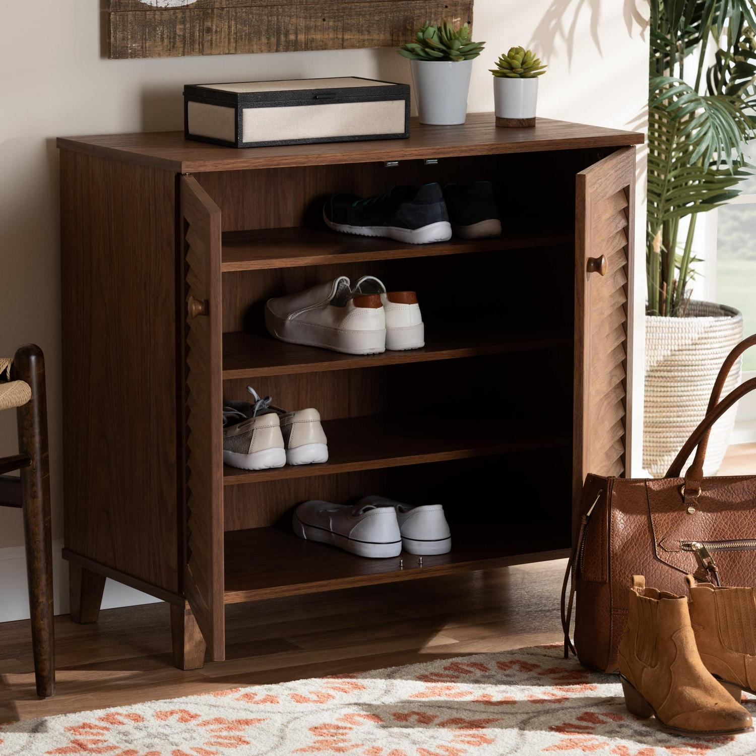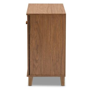 Baxton Studio Coolidge Modern Walnut 4-Shelf Shoe Cabinet