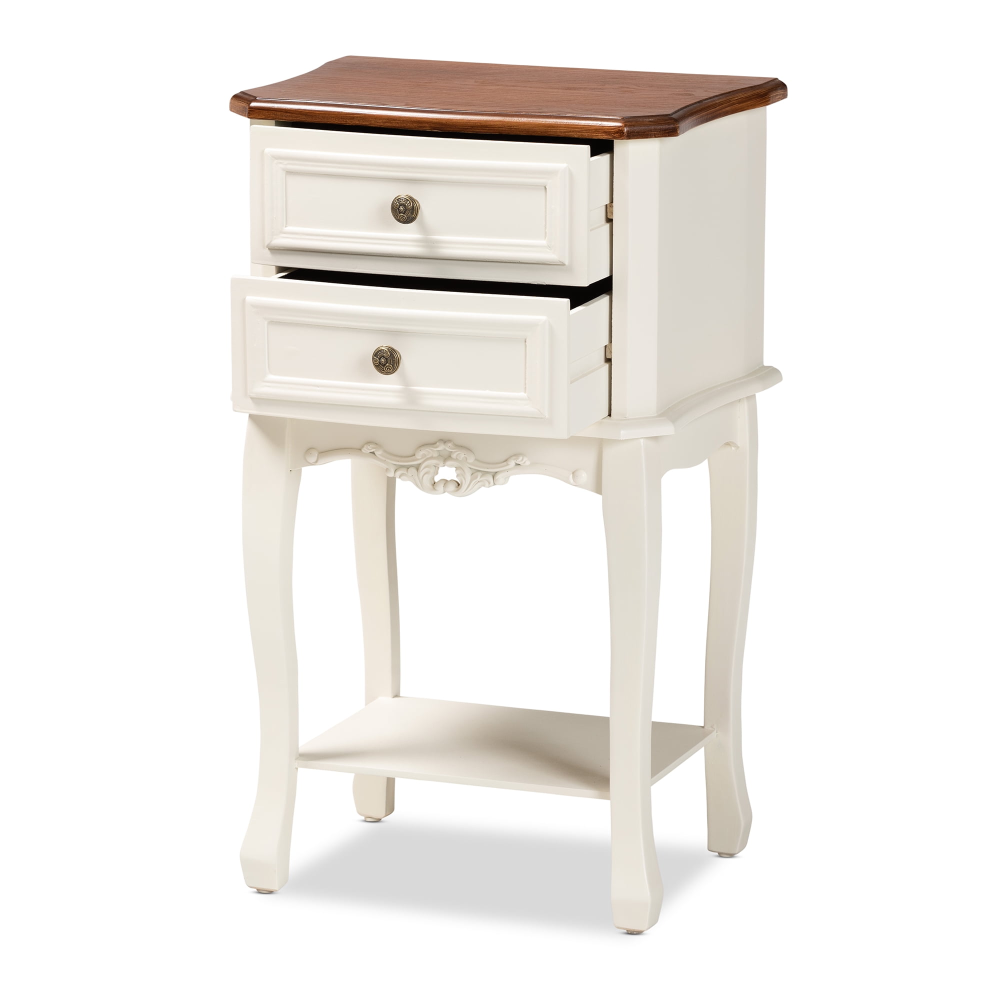Baxton Studio Darla Classic and Traditional French White and Cherry Brown Finished Wood 2-Drawer End Table
