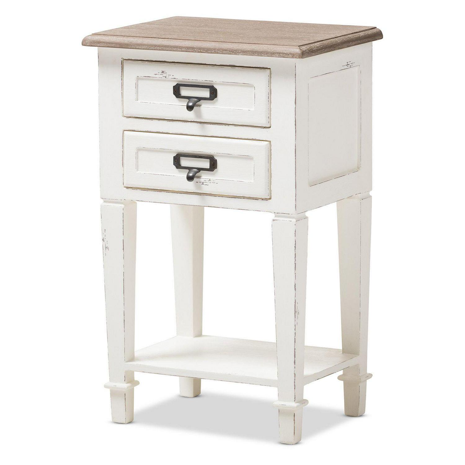 Baxton Studio Dauphine Provincial Style Weathered Oak and White Wash Distressed Finish Wood Nightstand